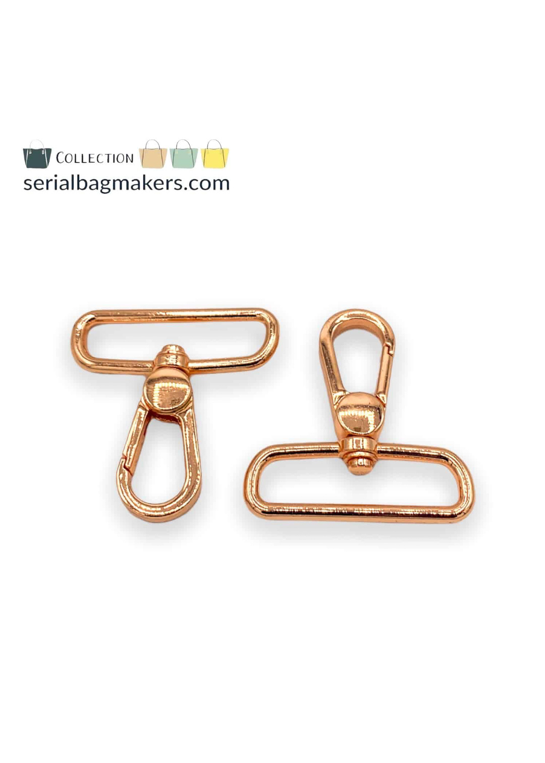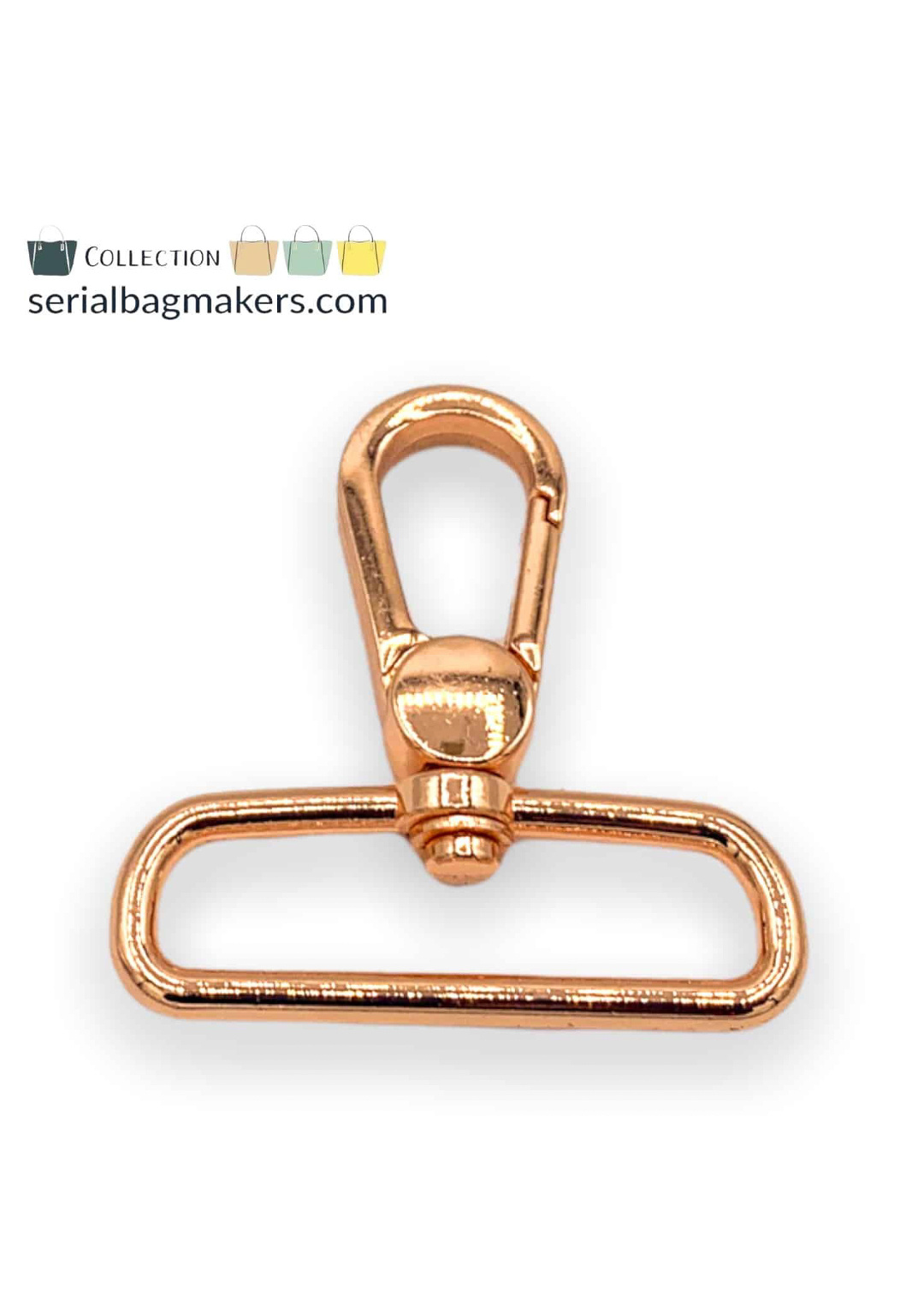 Mooie musketonhaak, om je schouderriem of tassenband aan de tas te bevestigen. Rechthoekige ring of passant.