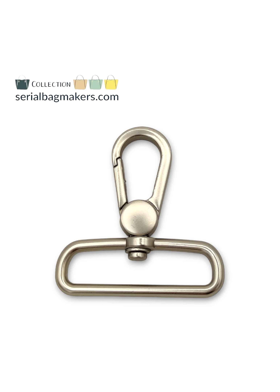 Mooie musketon, om je schouderriem of tassenband aan de tas te bevestigen. Rechthoekige ring of passant.