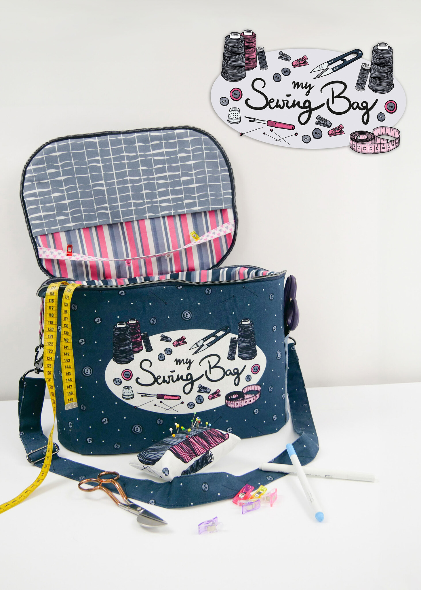 Een paneel voor het maken van een tas voor naaibenodigheden.