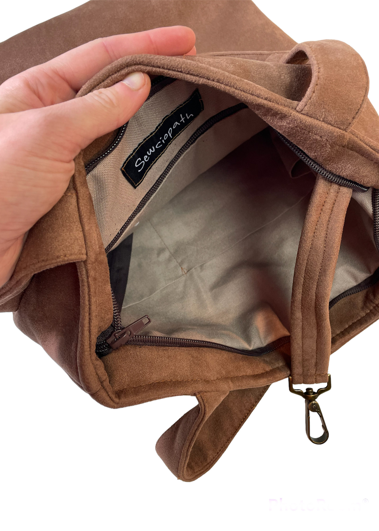 - Een ritszakje aan de binnenkant, met de optie om de rits netjes achter tussen de voering te verstoppen.