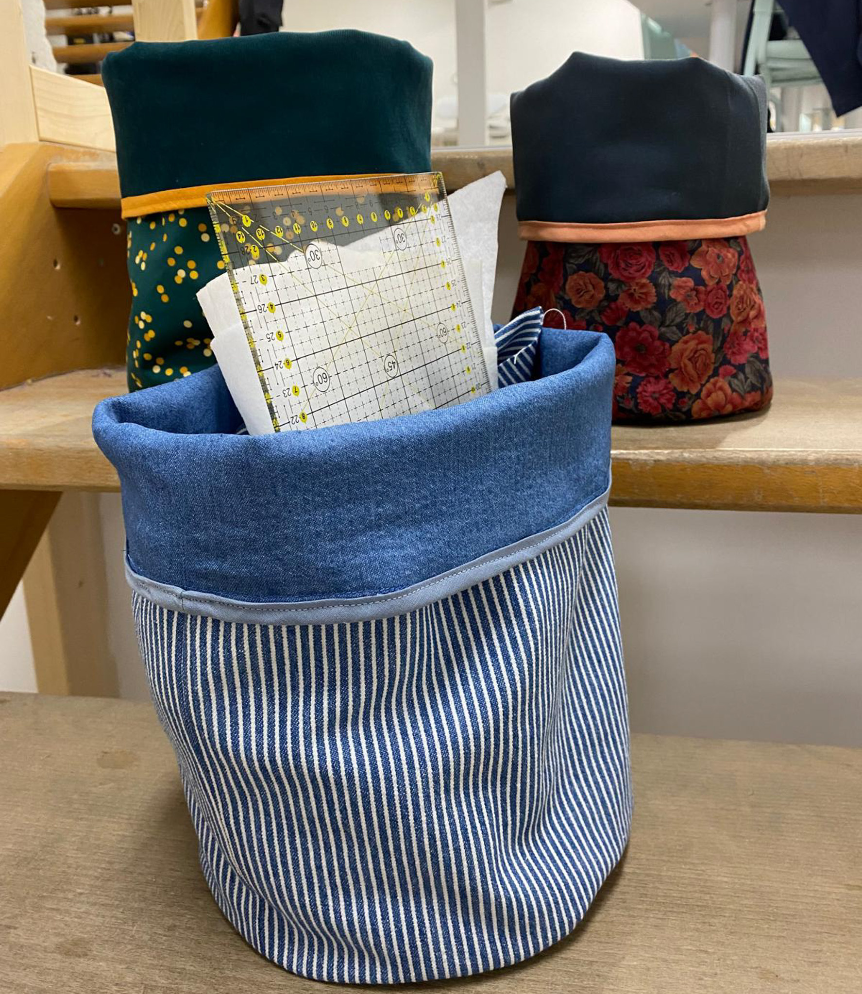 Stof, stikzijde en fournituren zijn niet inbegrepen, deze kunnen in de winkel aangekocht worden met workshopkorting. (5% + klantenkaartkorting)