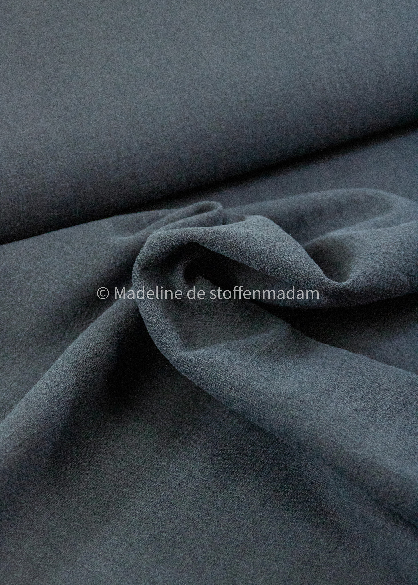 Onze Ramie voelt aan als linnen, ademt en is zacht voor de huid. Deze stof is zwaar genoeg voor vestjes of jassen, maar is ook fantastisch voor kleedjes, broeken, rokjes en bloezen.