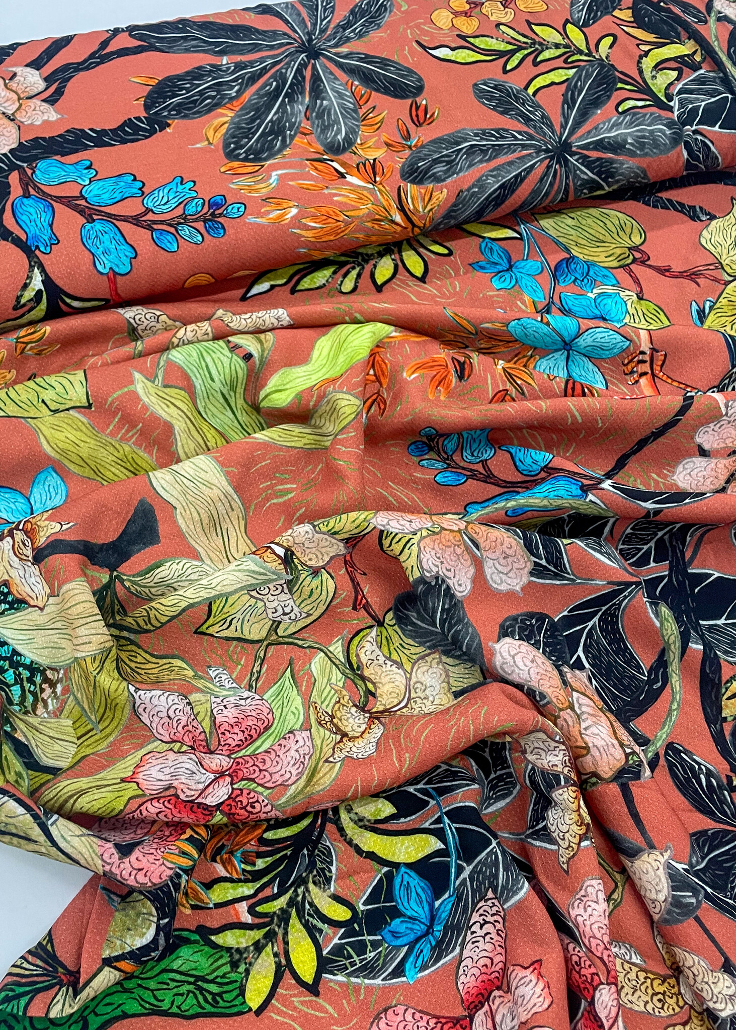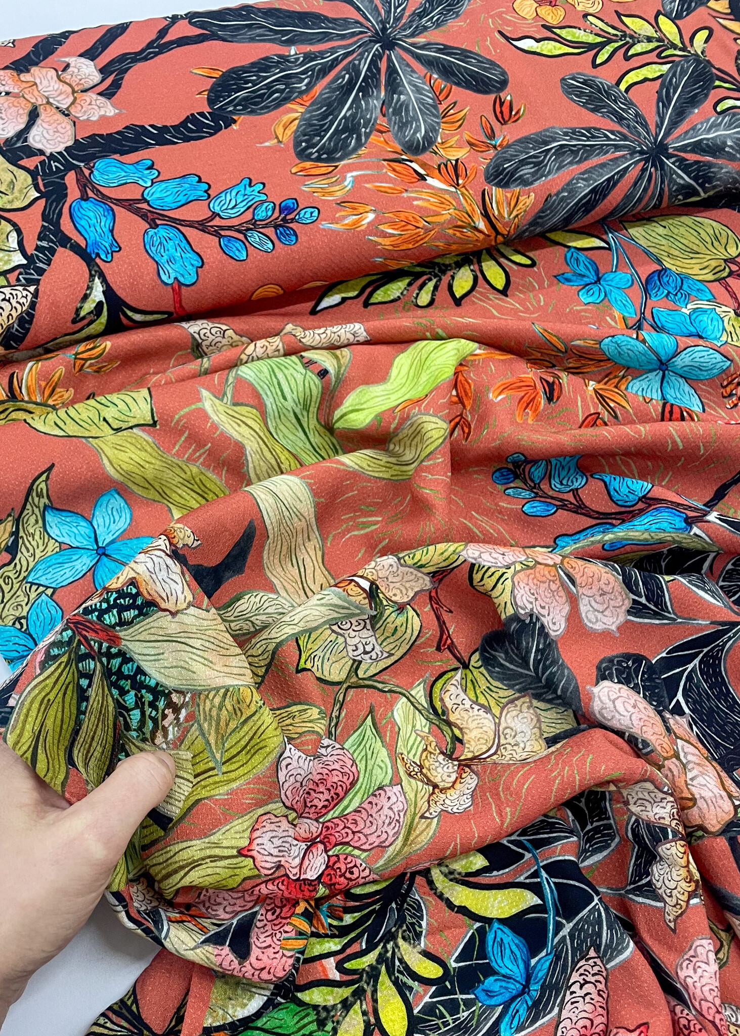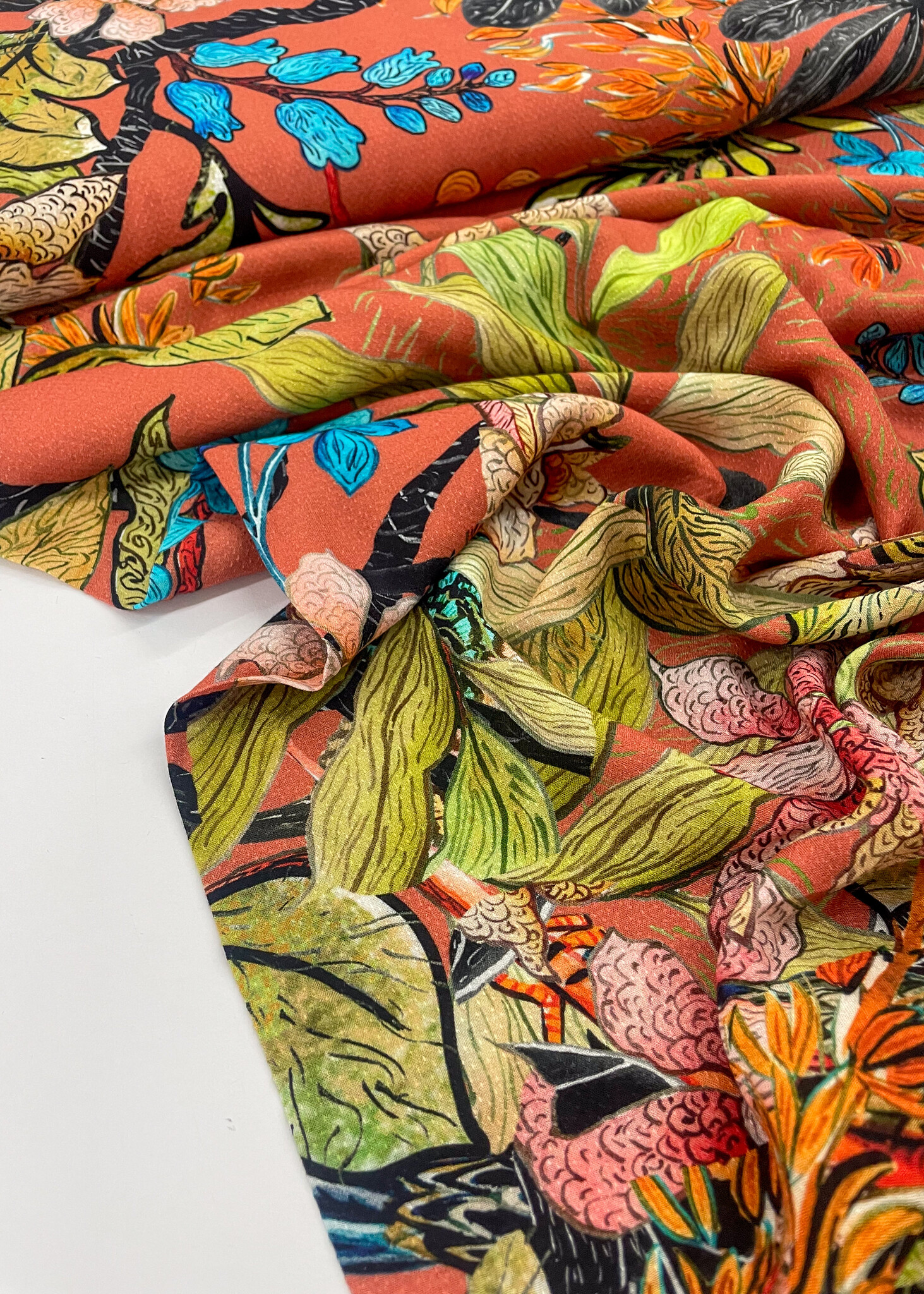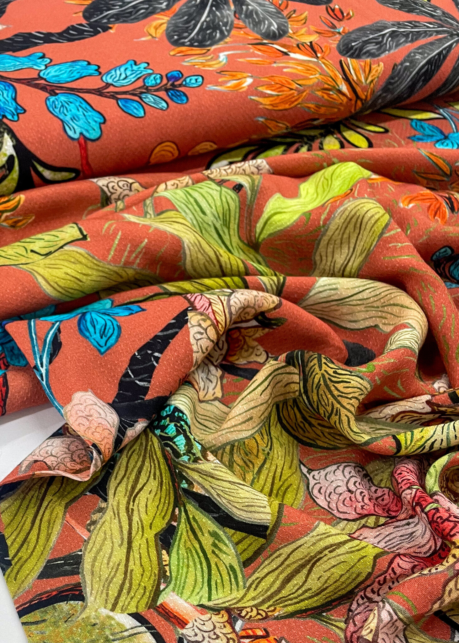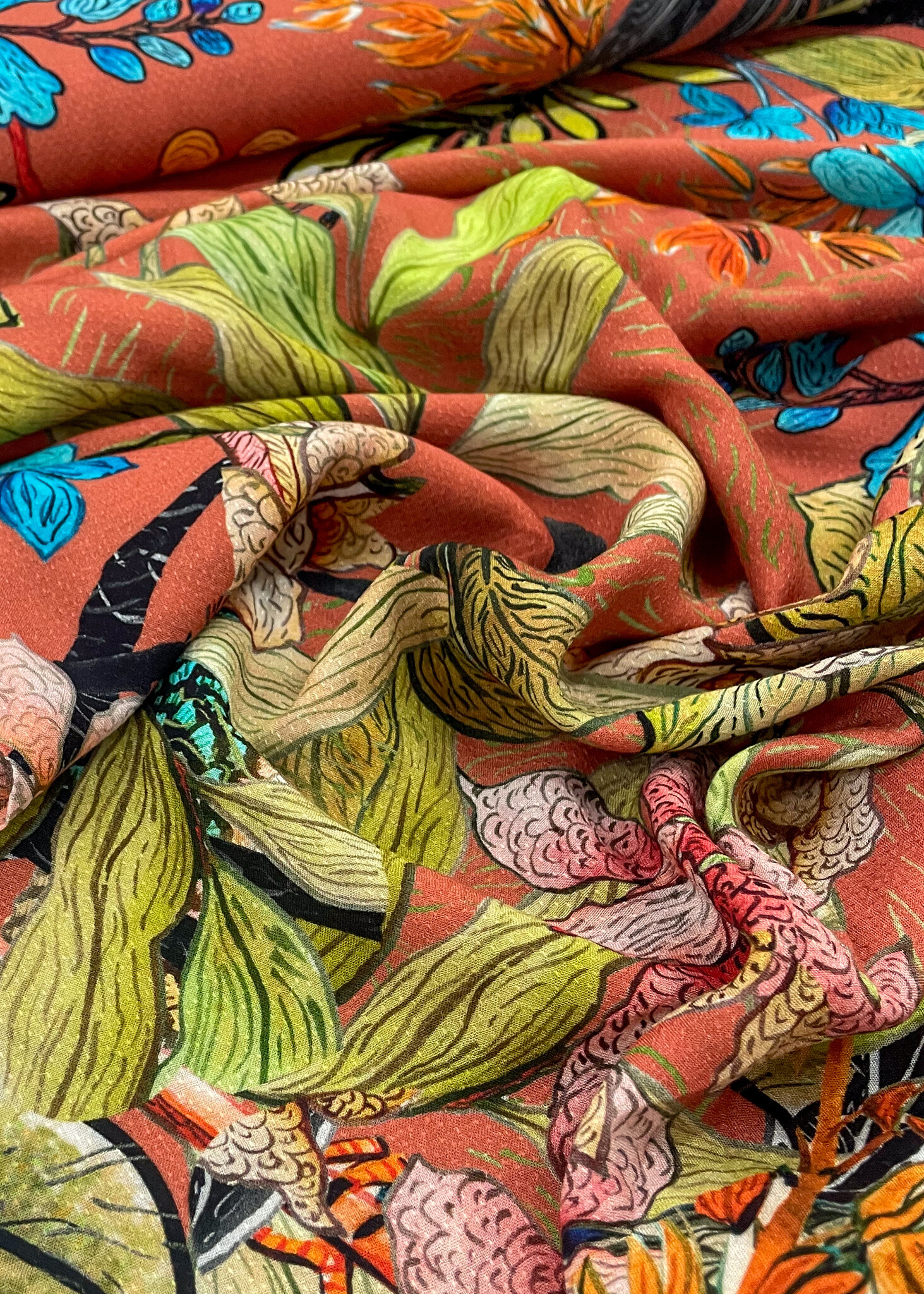 Een ultra zachte en soepele viscose voile met bladeren. Swafing Stoffe.