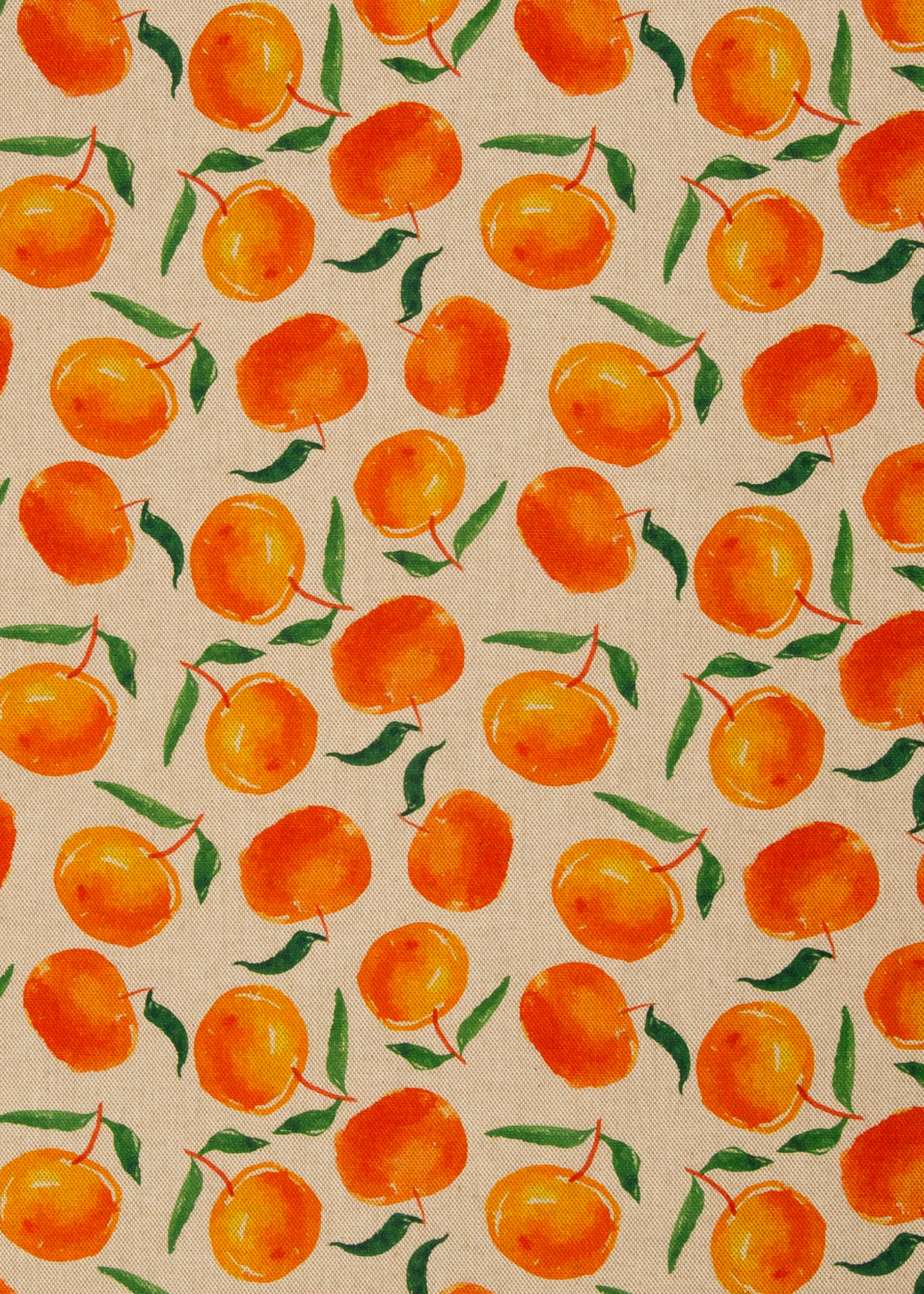 Een soepele en zachte canvas met toffe appelsienenprint uit de collectie van Swafing. Perfect voor schorten, decoratie, servetten, broodmandjes, tafelkleedje, tassen, ...