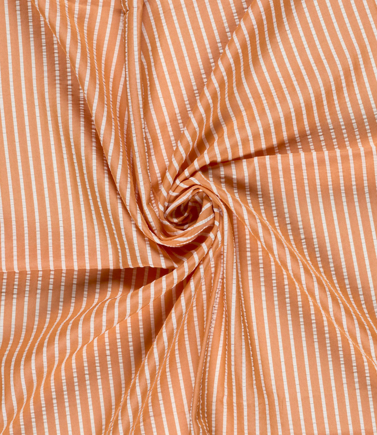 oranje verticale strepen - seersucker - Madeline de stoffenmadam - Stoffenwinkel Lier ( Antwerpen )