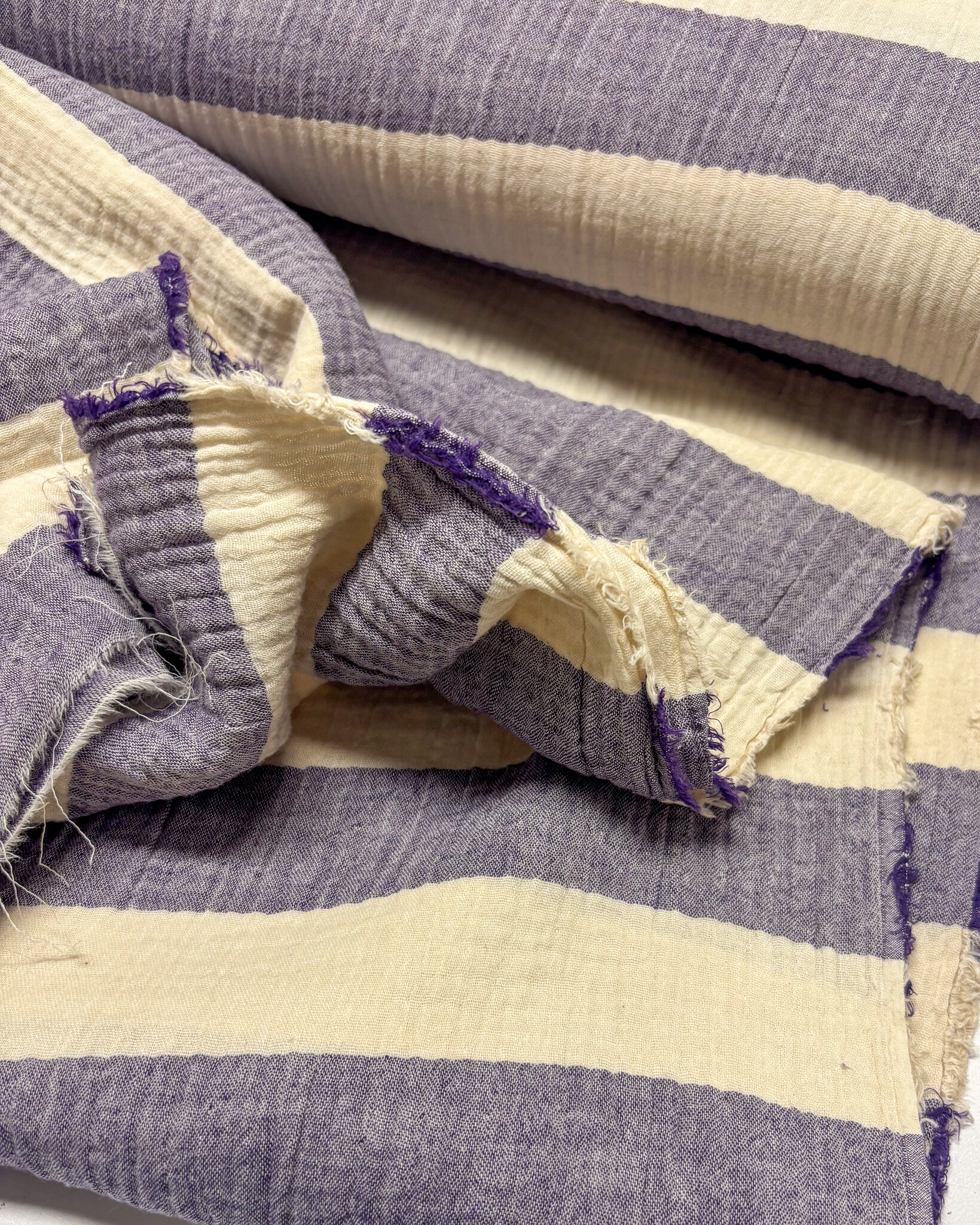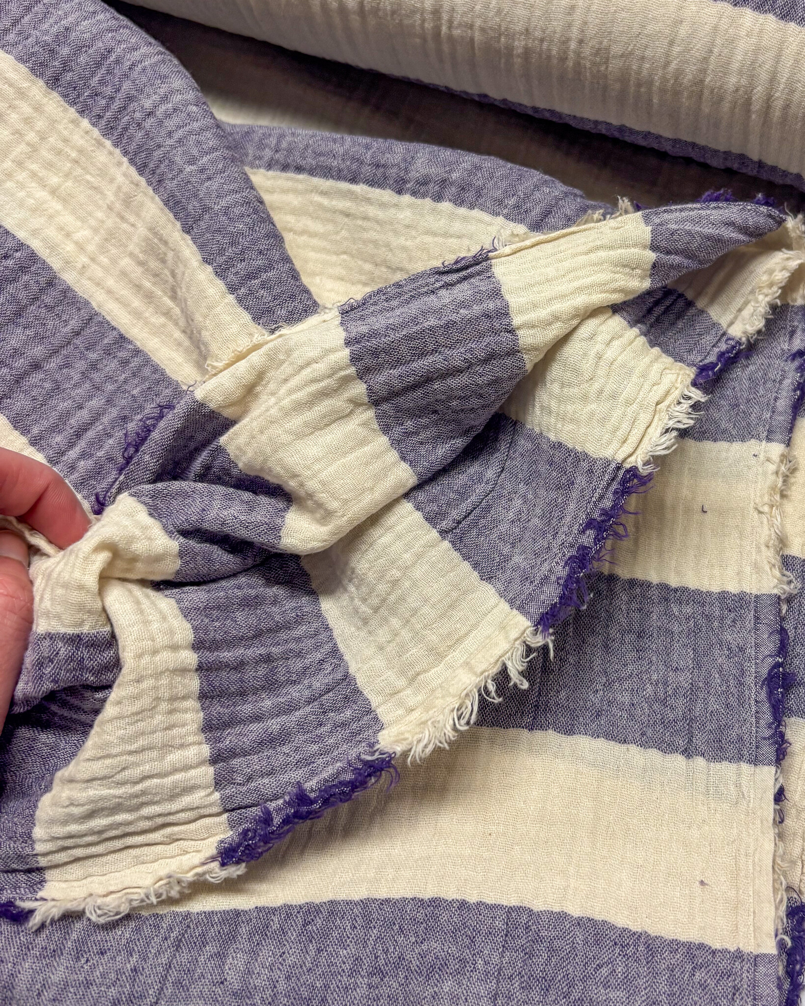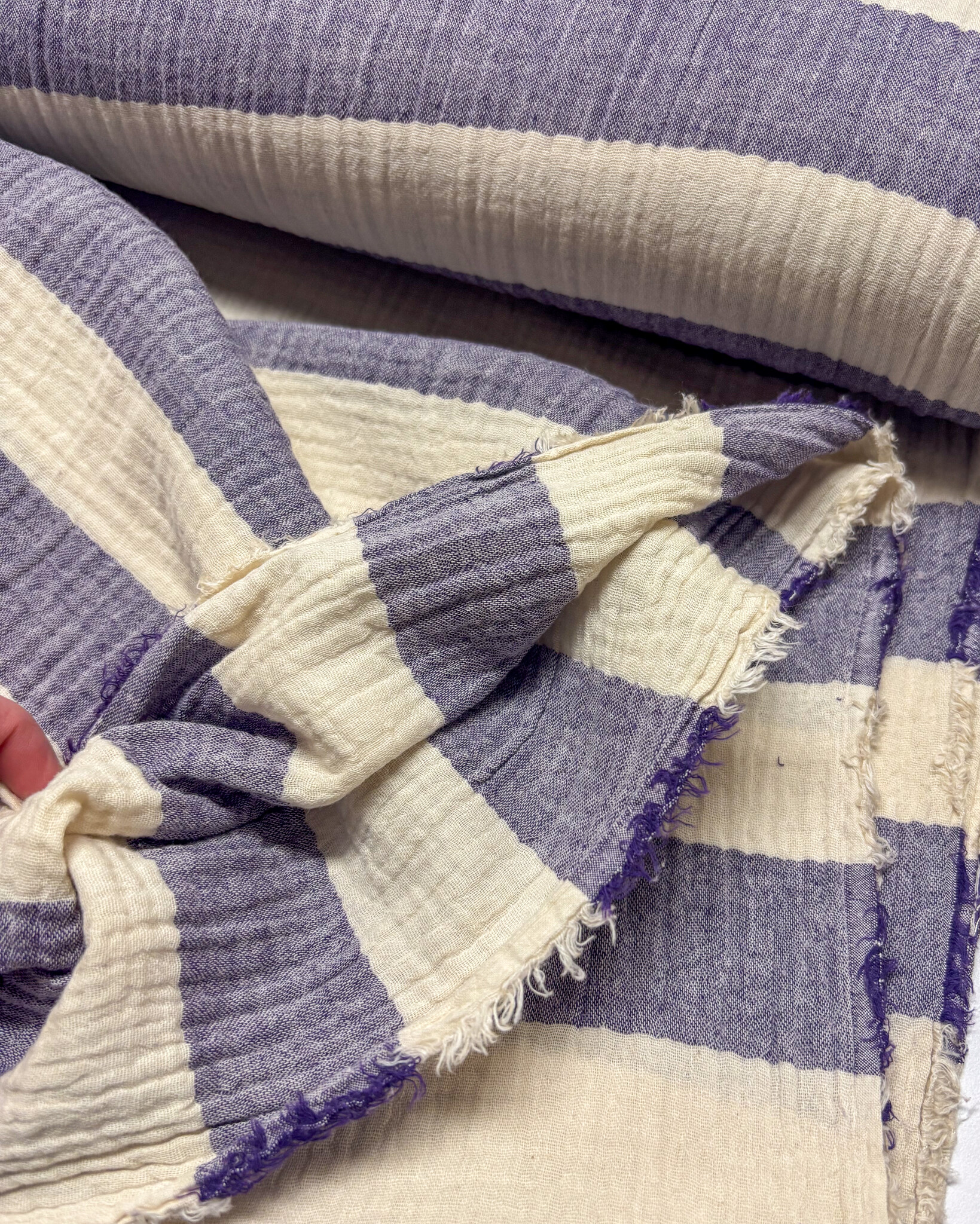 Mooie kwaliteit double gauze / tetra met strepen. Perfect kleedjes, tops, T-shirts en voor baby- en kinderspulletjes. Heerlijk zacht.