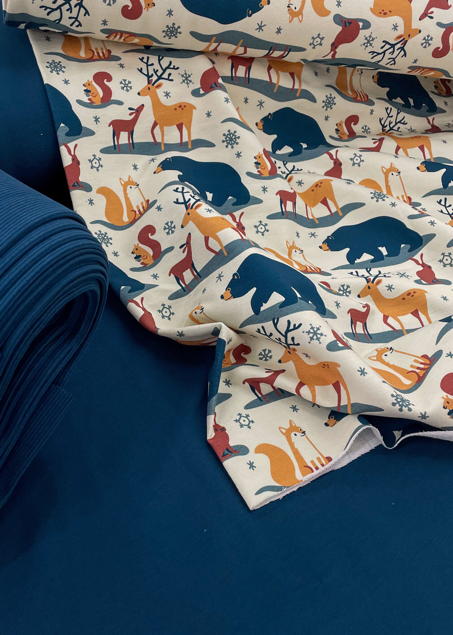 Mooie zachte sweaterstof, opgeruwd aan de binnenkant. Met bijpassende boordstof.
