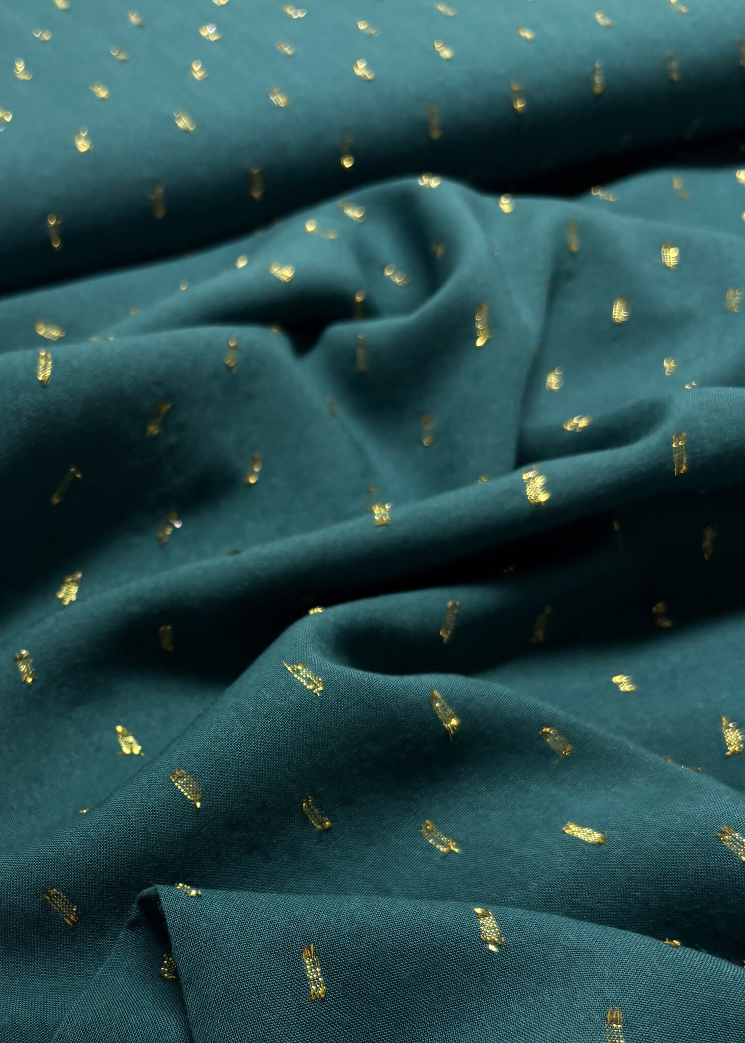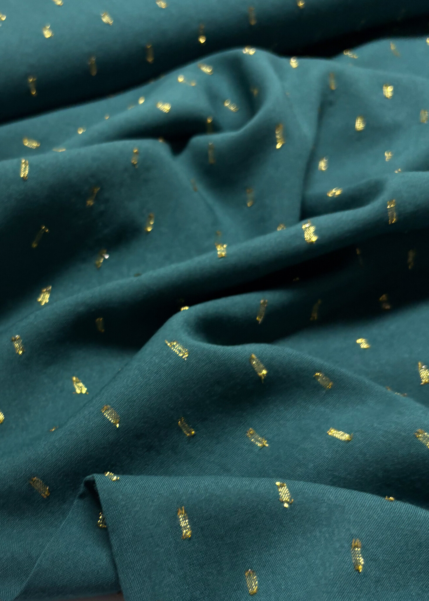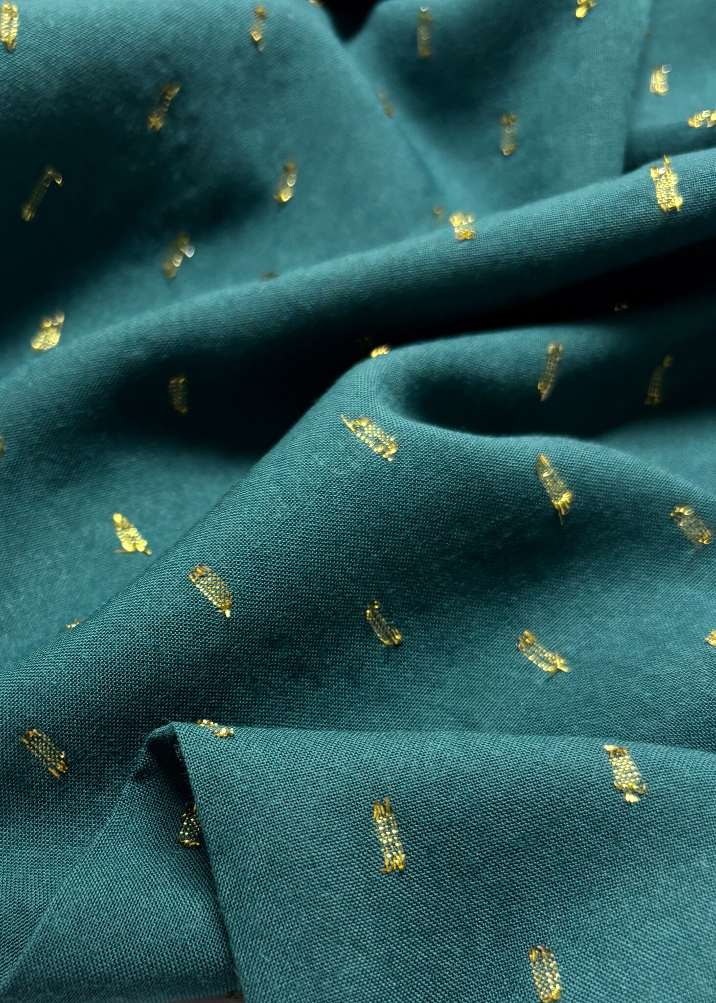 petrolgroen touch of gold - geweven viscose - Madeline de stoffenmadam - Stoffenwinkel Lier ( Antwerpen )