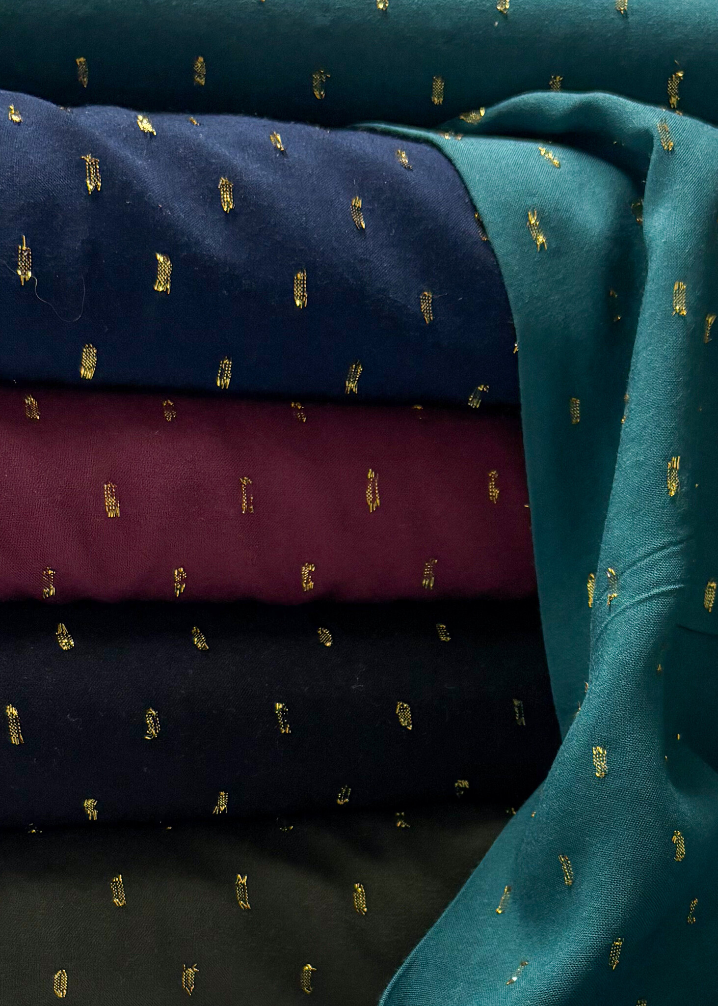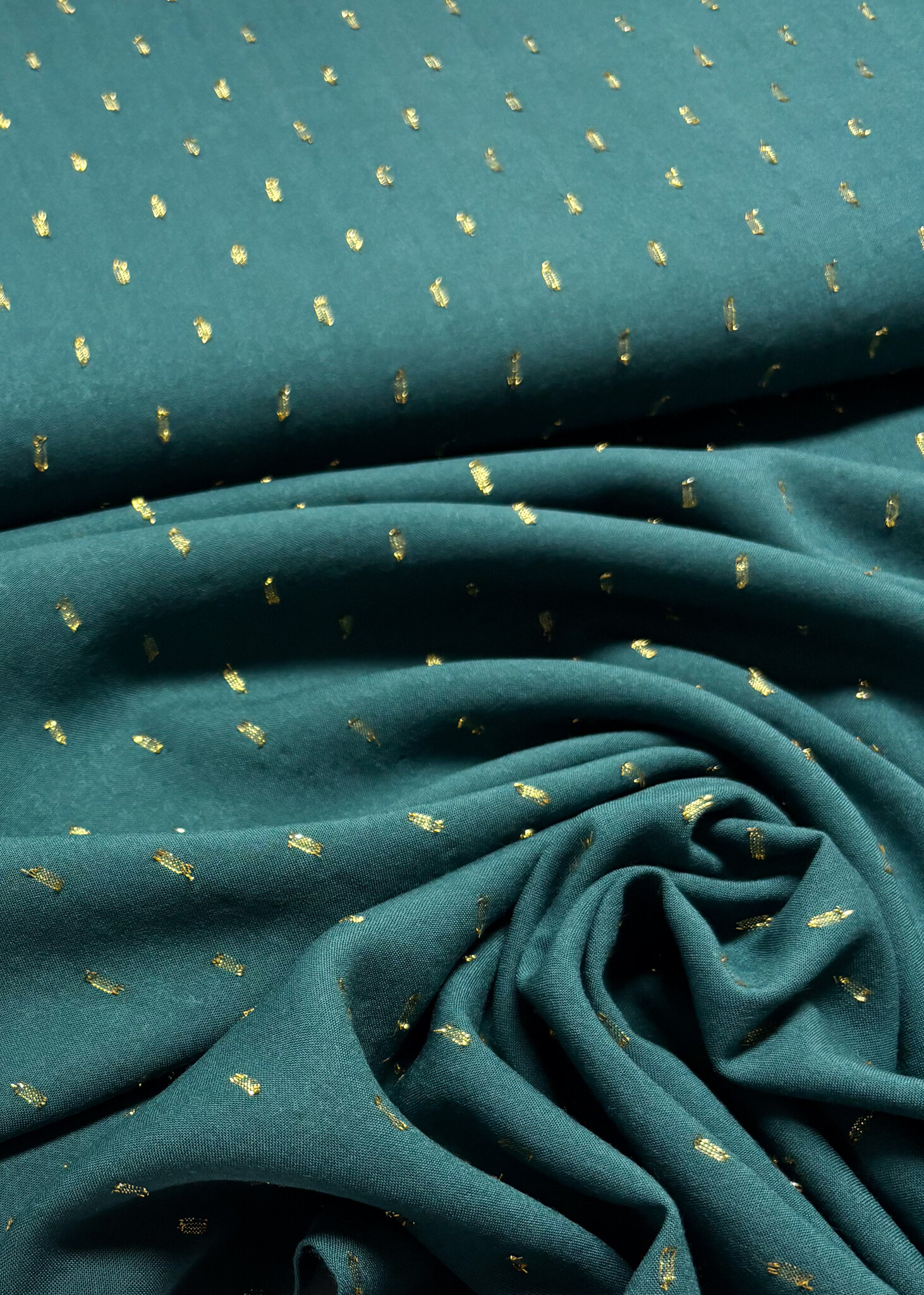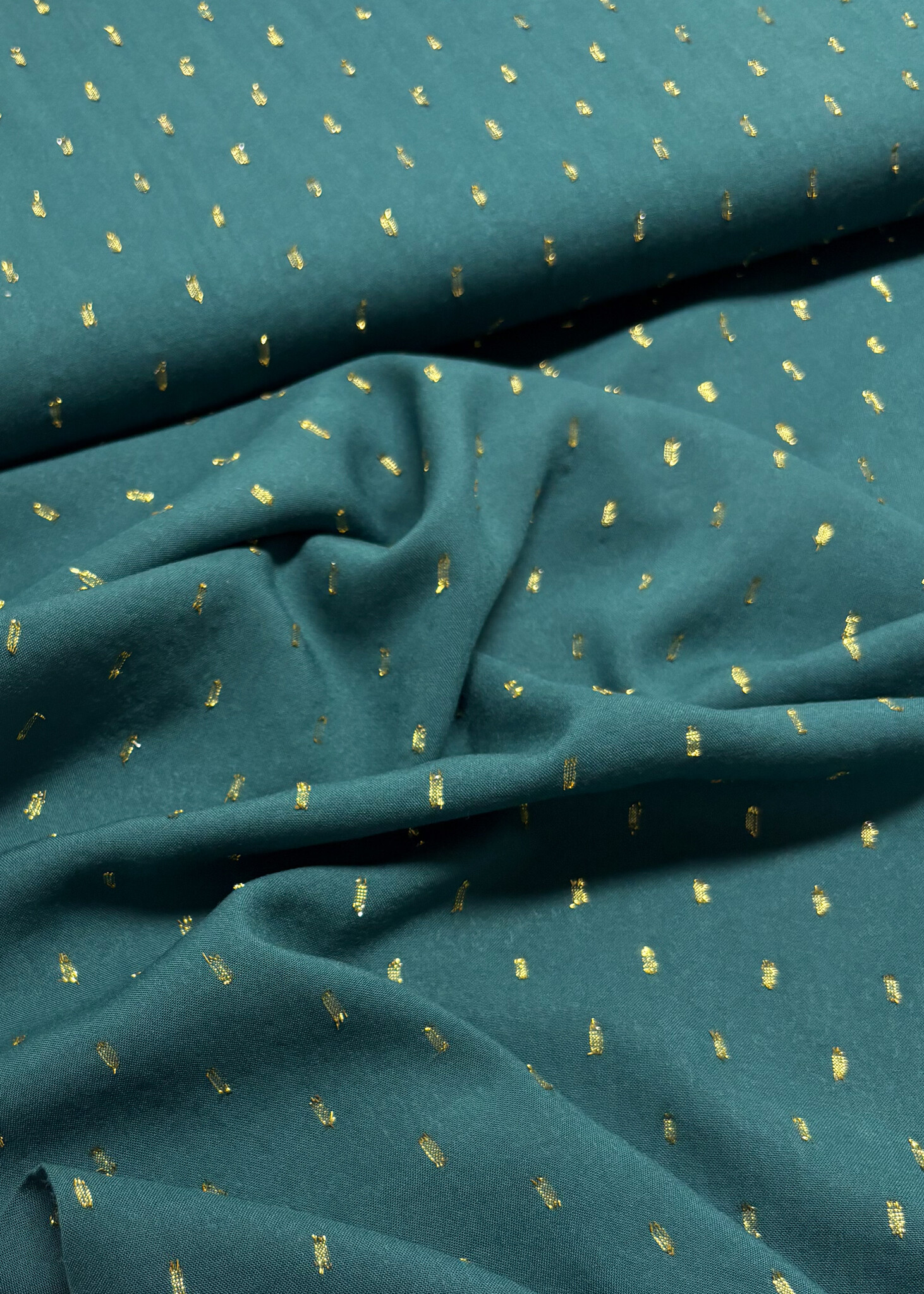 petrolgroen touch of gold - geweven viscose - Madeline de stoffenmadam - Stoffenwinkel Lier ( Antwerpen )