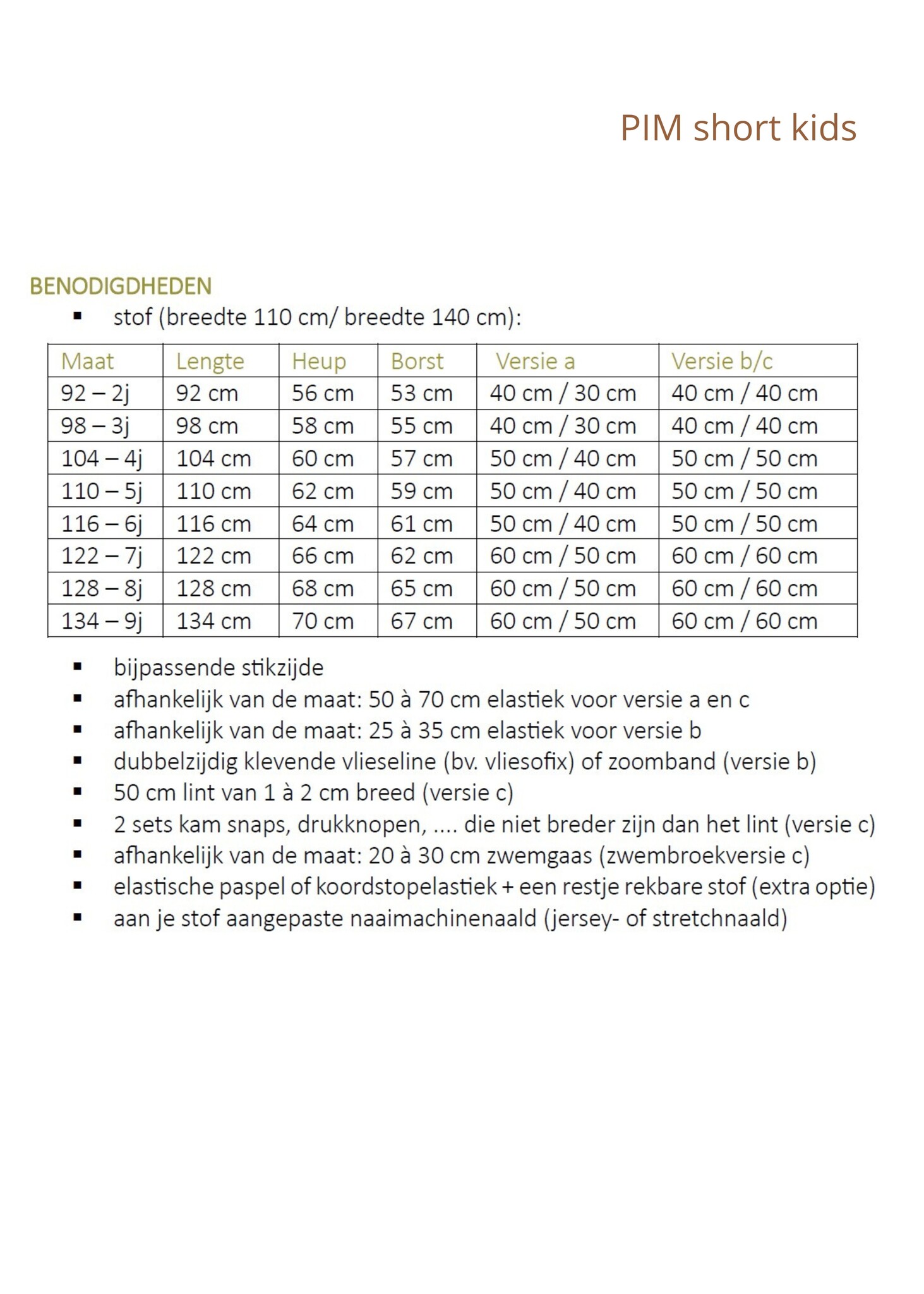 PIM short - in de maten 92 (2 jaar) tot 134 (9jaar)