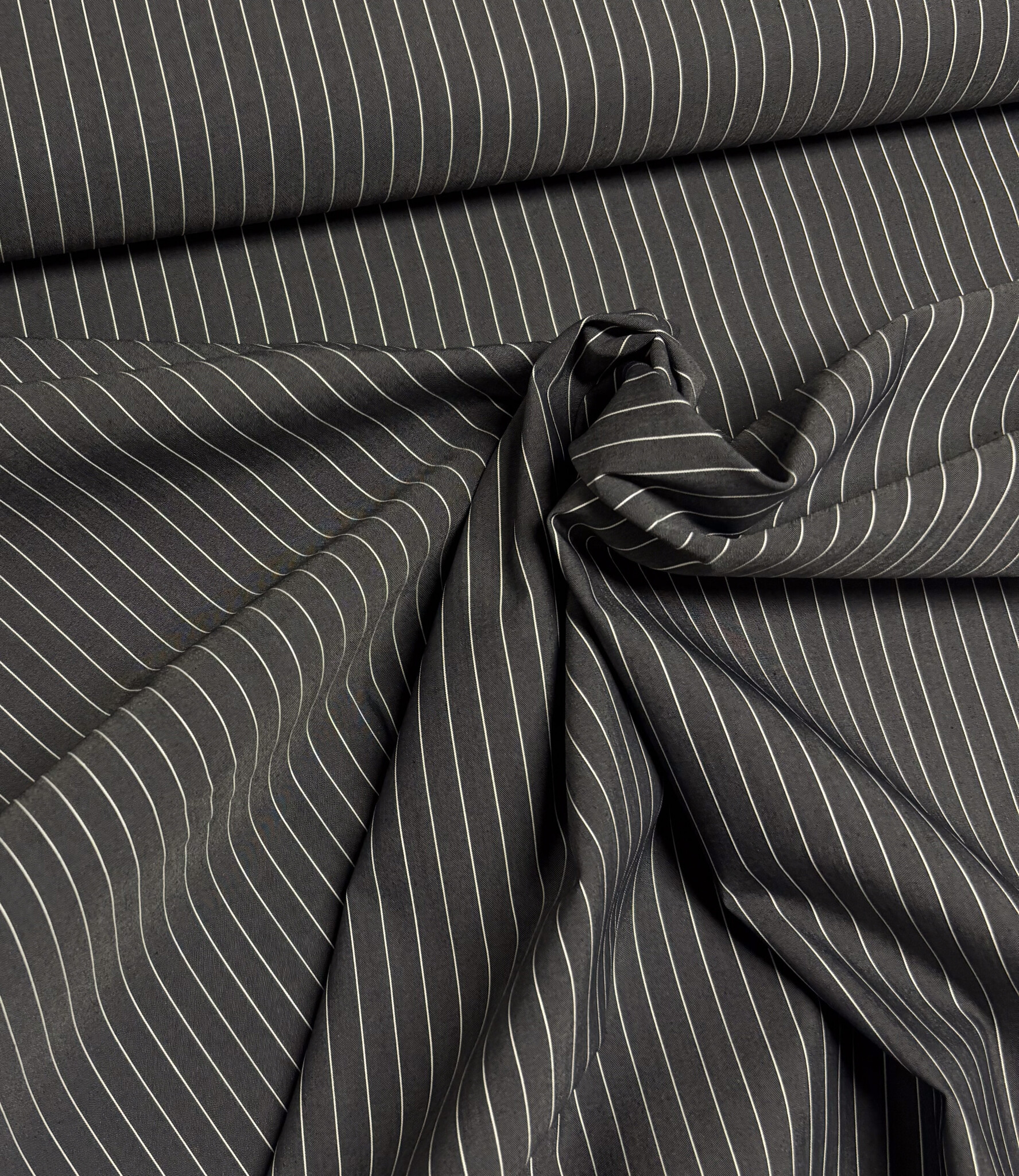 pine stripe 2 - antraciet met witte strepen - hemdenkatoen - Madeline de stoffenmadam - Stoffenwinkel Lier ( Antwerpen )