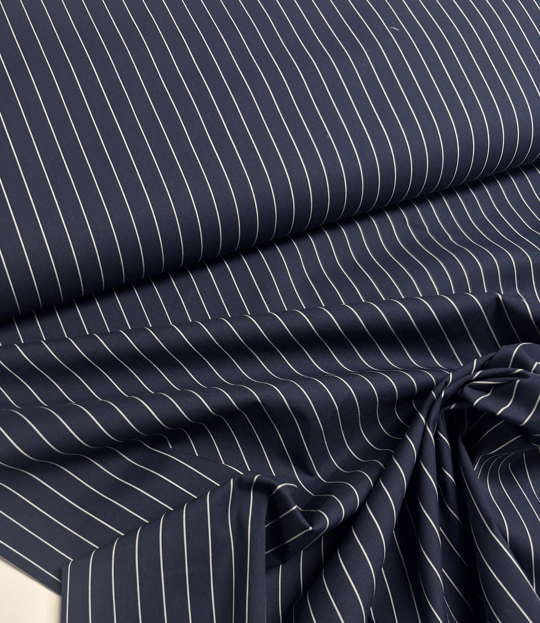 Een zachte hemdenkatoen met strepen. Kreukt minder en is perfect voor hemden.