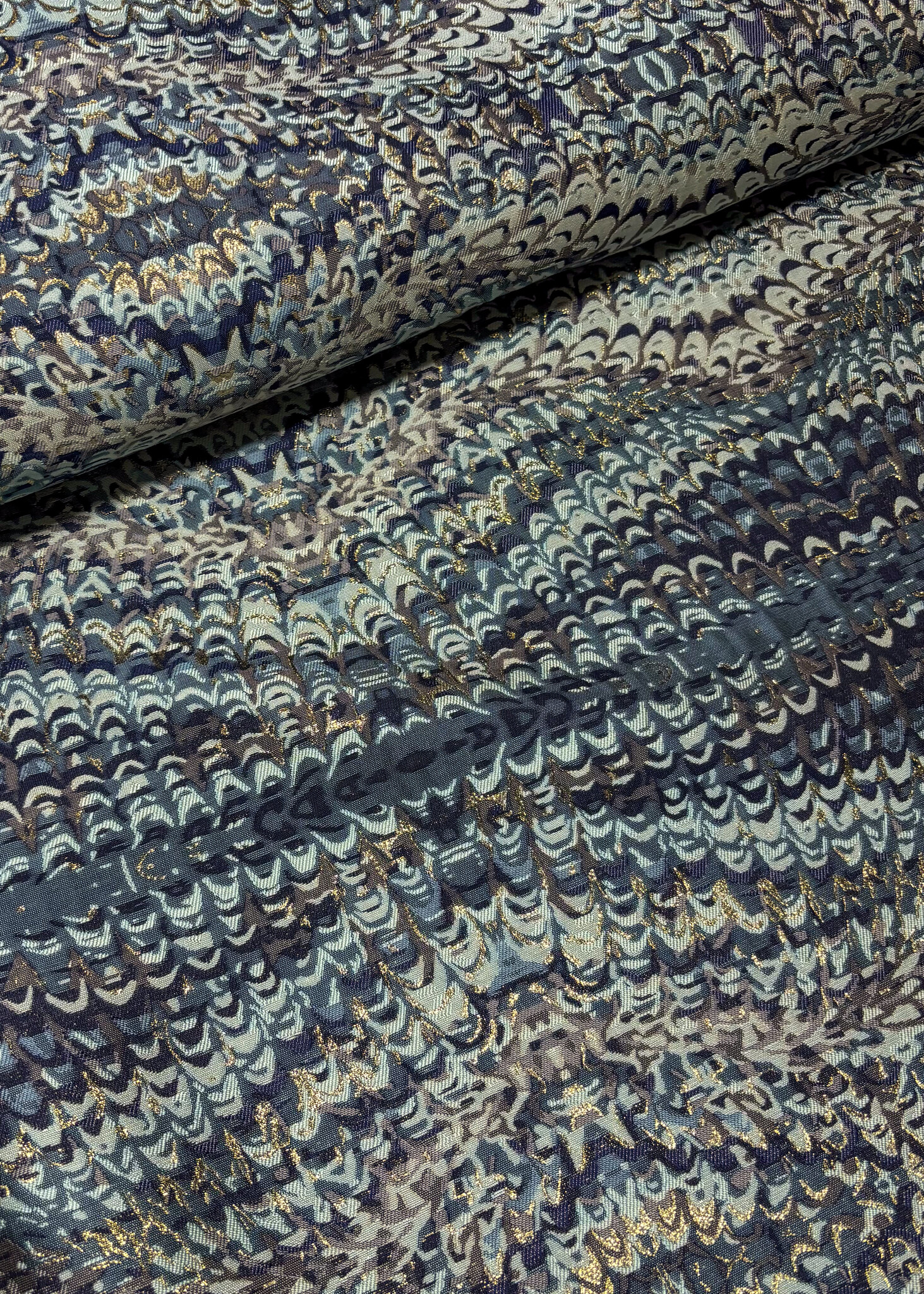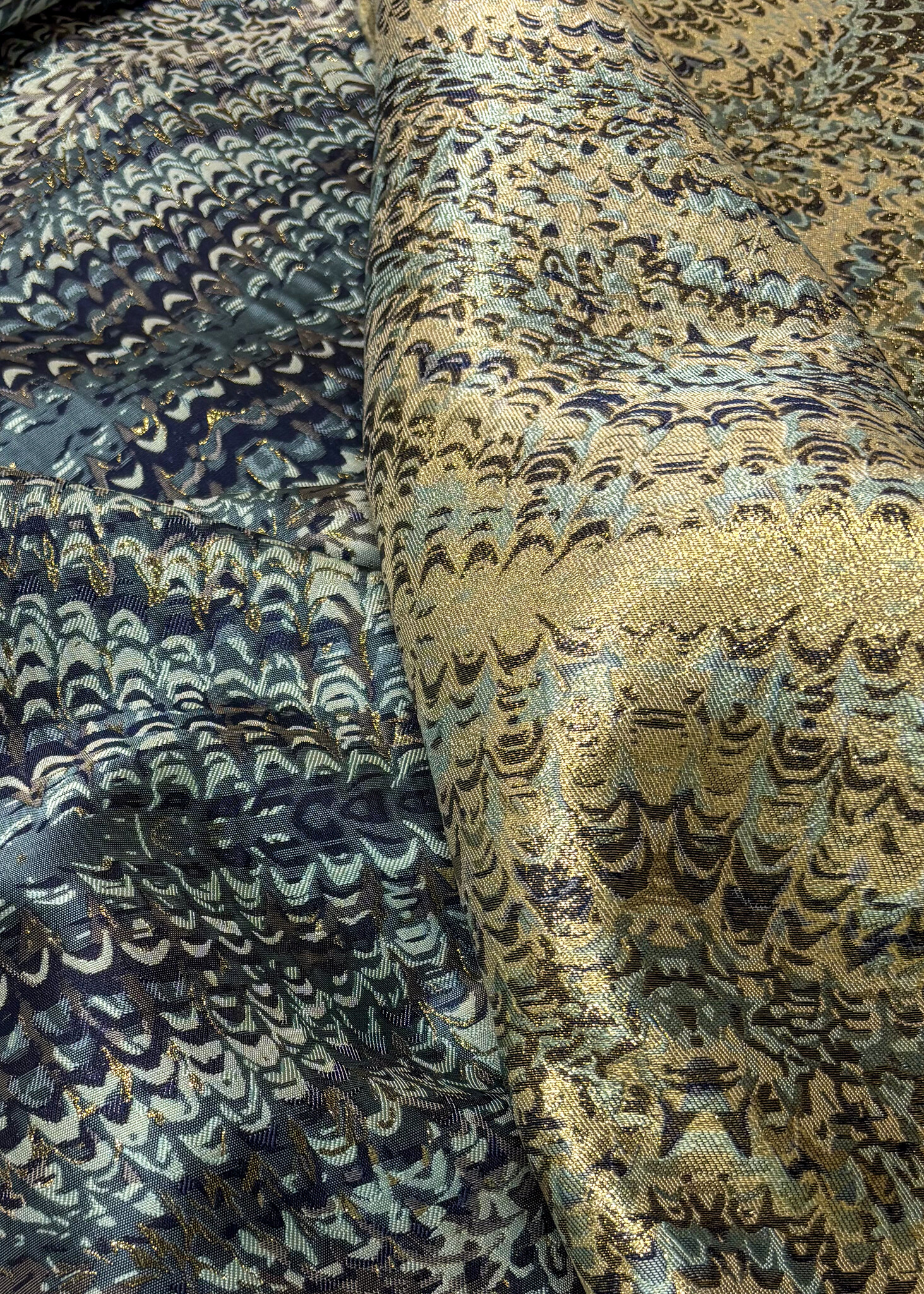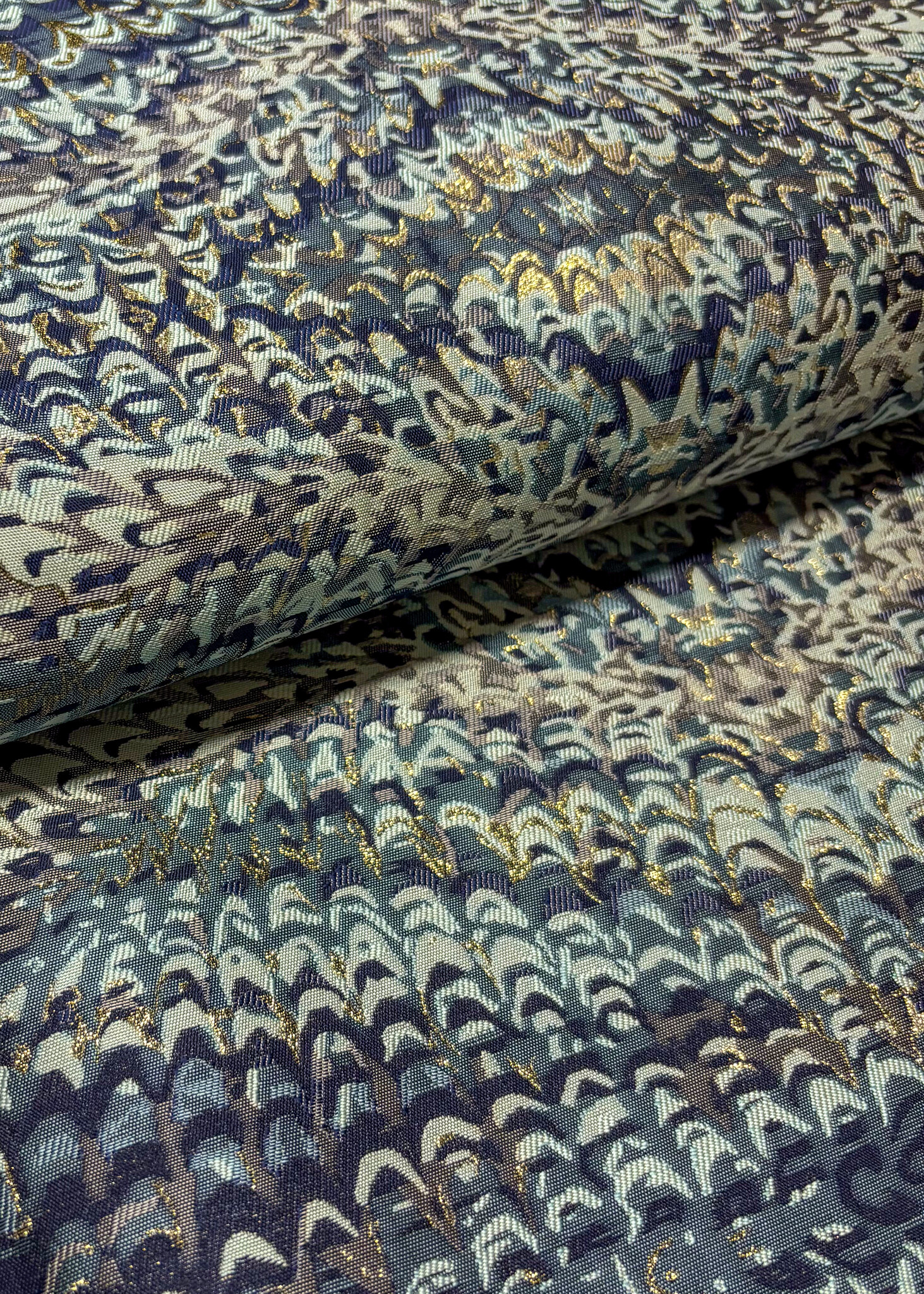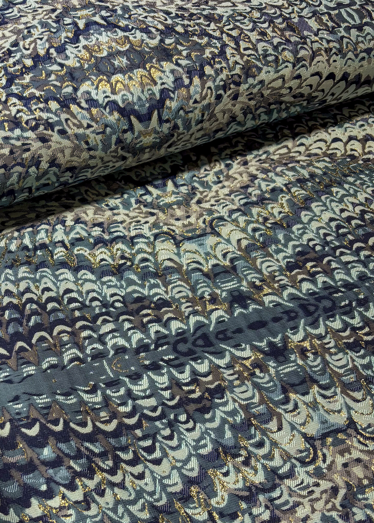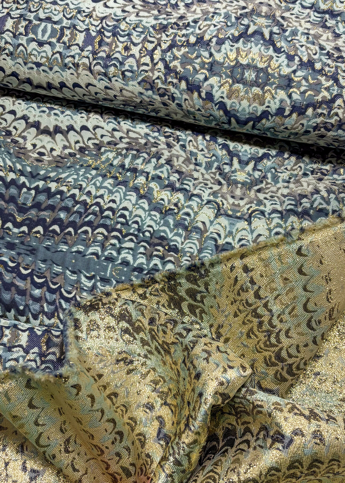 Een mooie, geweven jacquard met lurex. Ideaal voor blazers, rechte rokken, ... Ook heel tof als accent op de mouw van de Laure sweater.