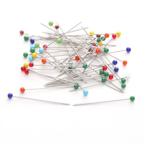 Glaskopspelden: 3 cm lang, 0,6 mm dik.