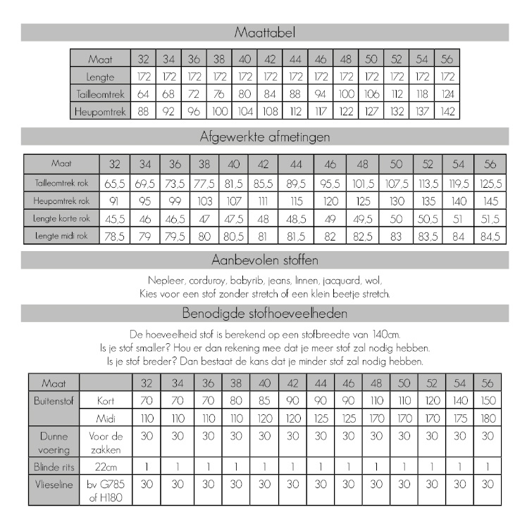 Riva is een patroon voor een stijlvolle rok met figuurnaden, tailleband op vorm en een blinde rits achteraan.