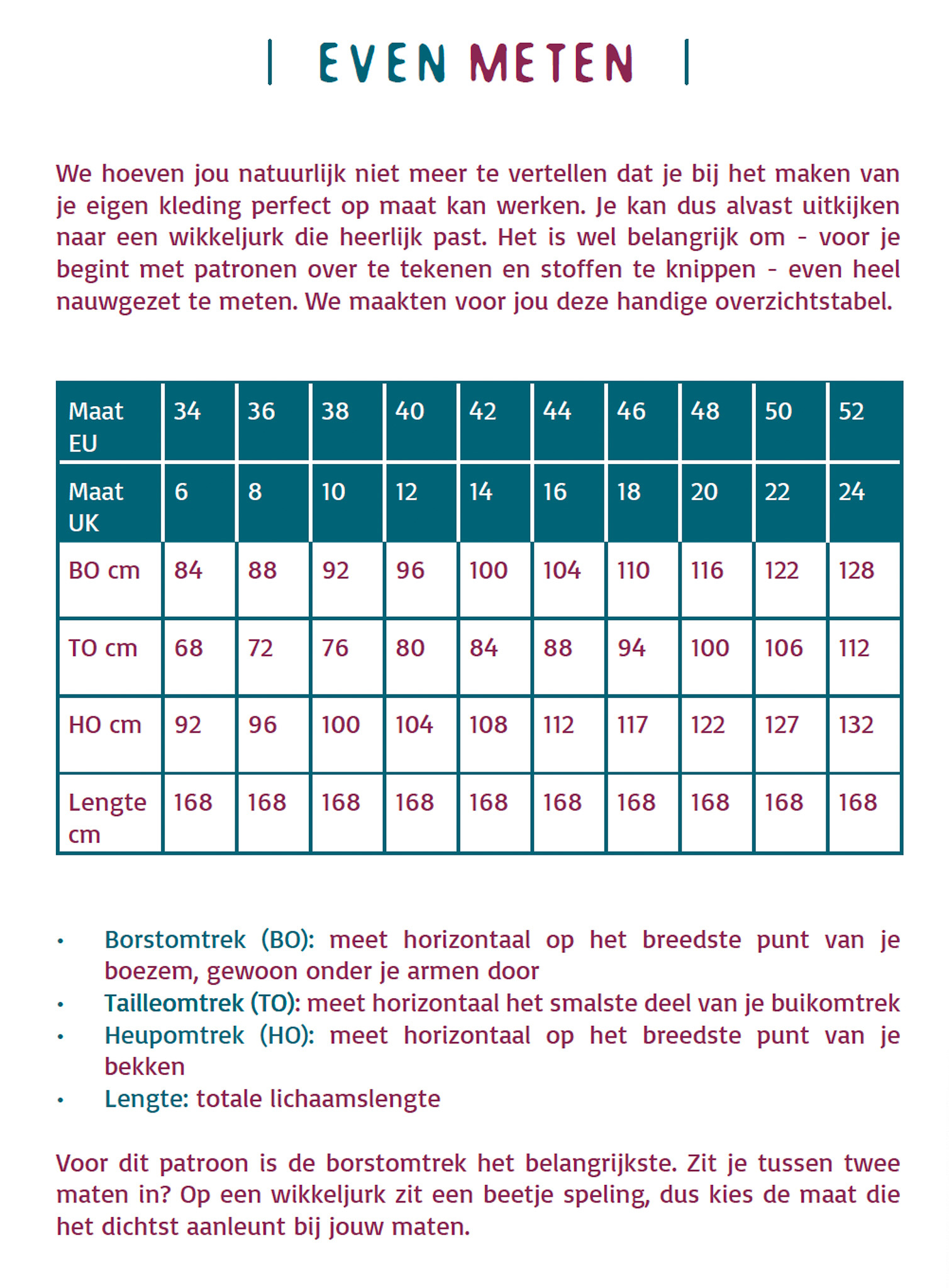 De naadwaarden zijn inbegrepen in de patroondelen.