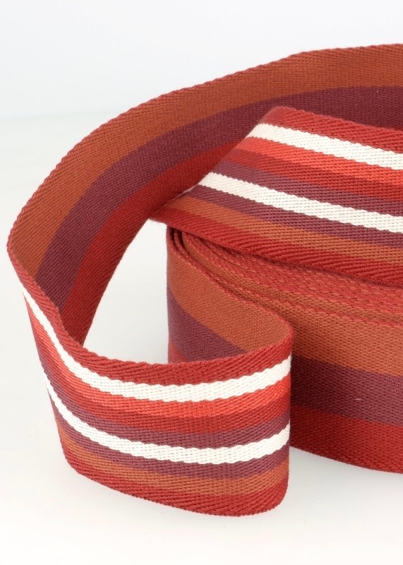 rood gestreept 40 mm dubbelzijdige tassenband - Madeline de stoffenmadam - Stoffenwinkel Lier ( Antwerpen )