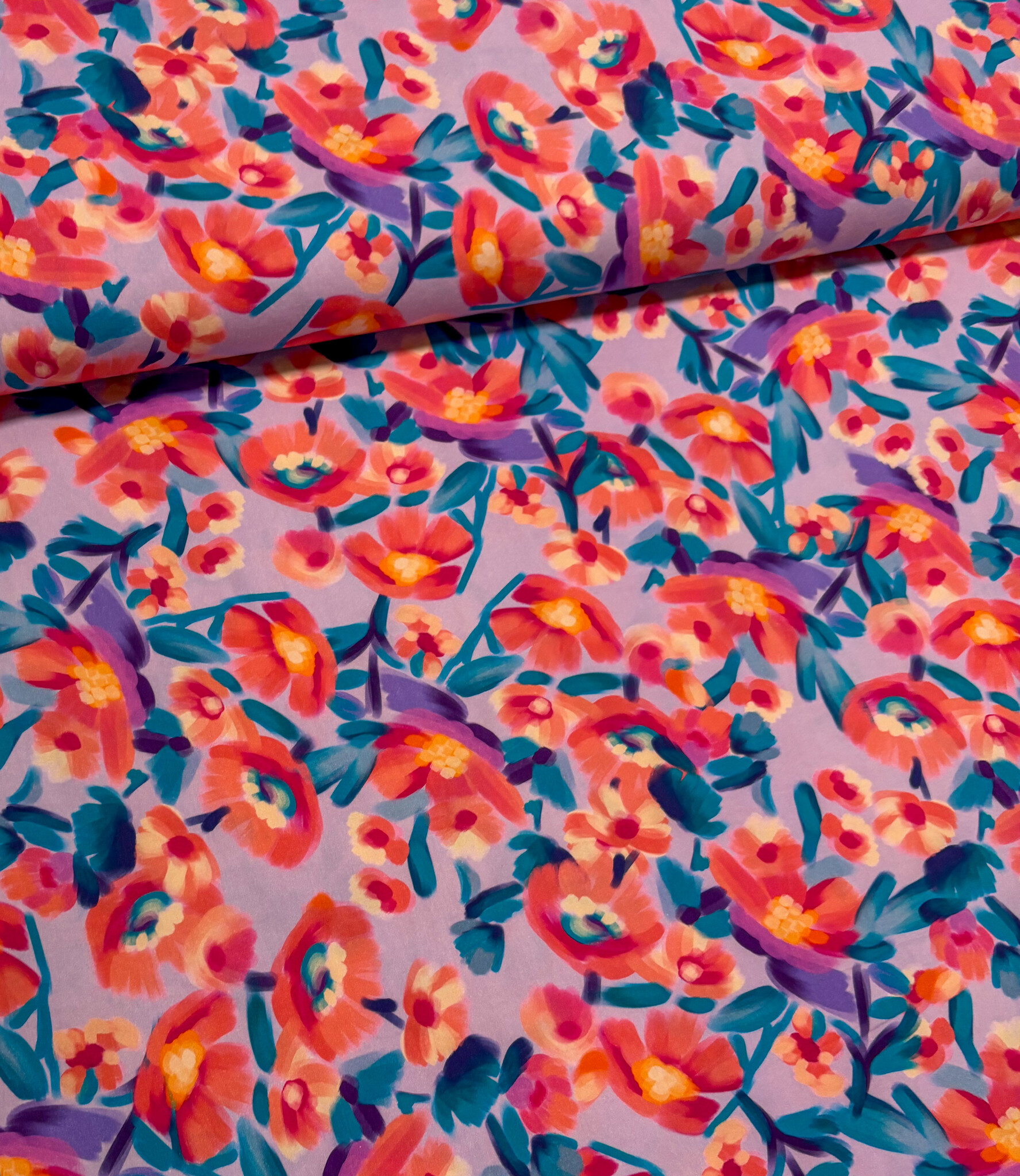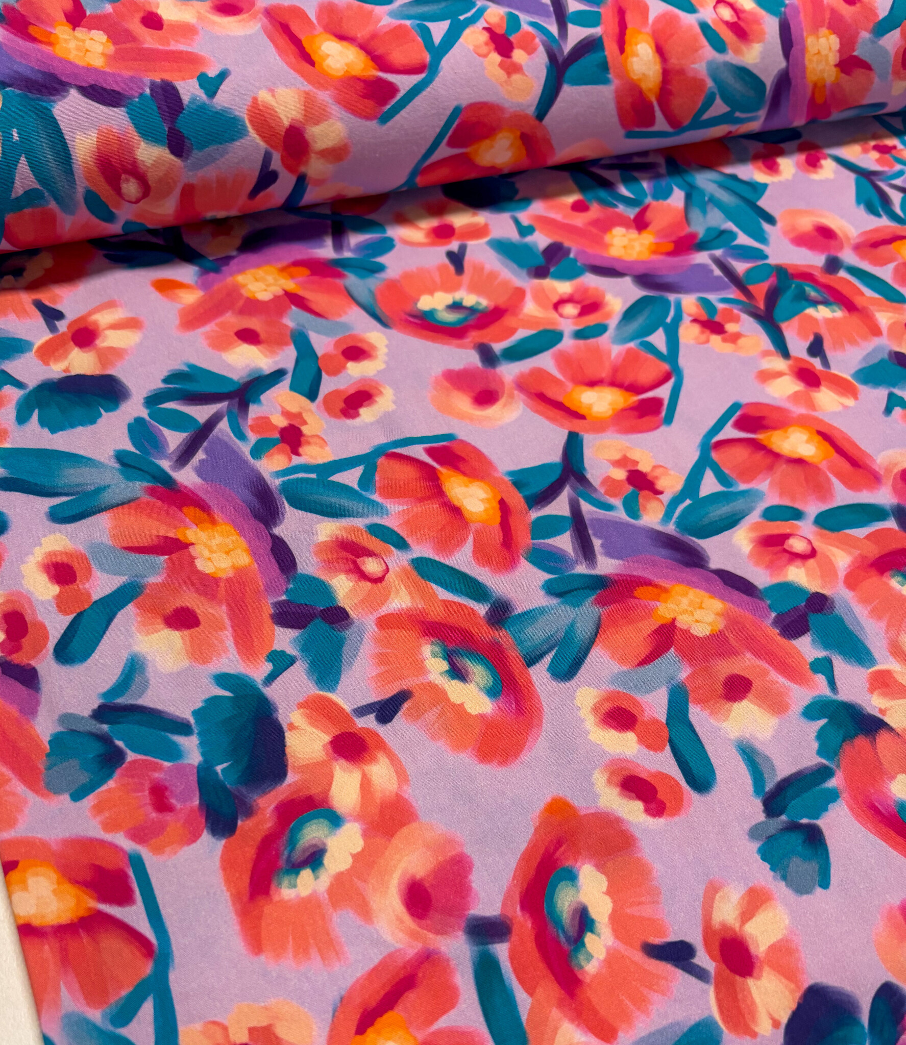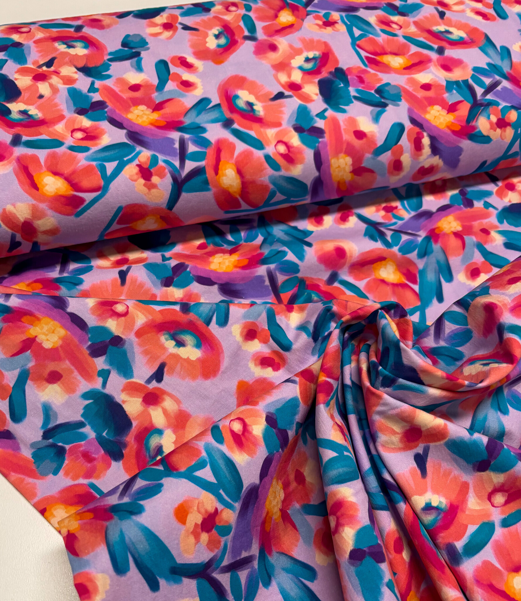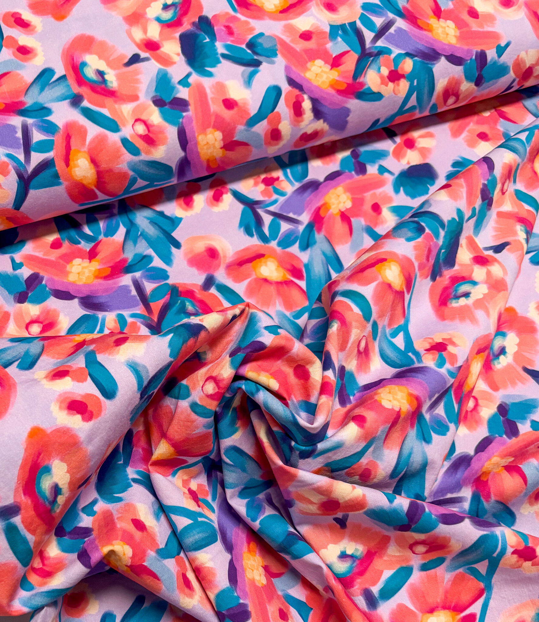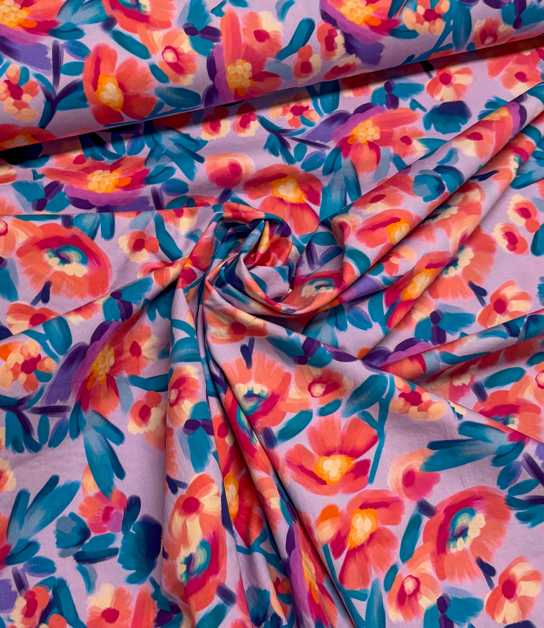 Een stretchkatoen met bloemen.