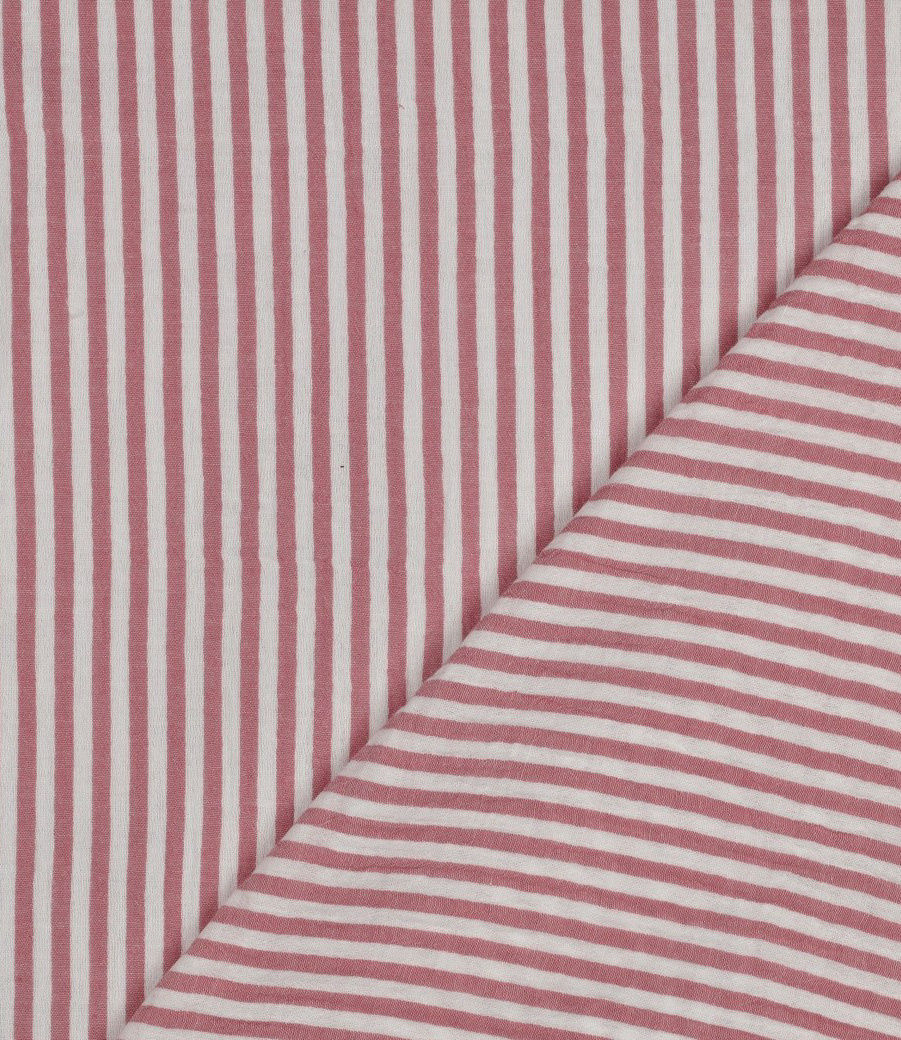 Mooie kwaliteit double gauze met verticale strepen. Perfect voor kleedjes, tops, T-shirts en voor baby- en kinderspulletjes (babynestje, dekentje, ...). Heerlijk zacht. OEKO-tex.