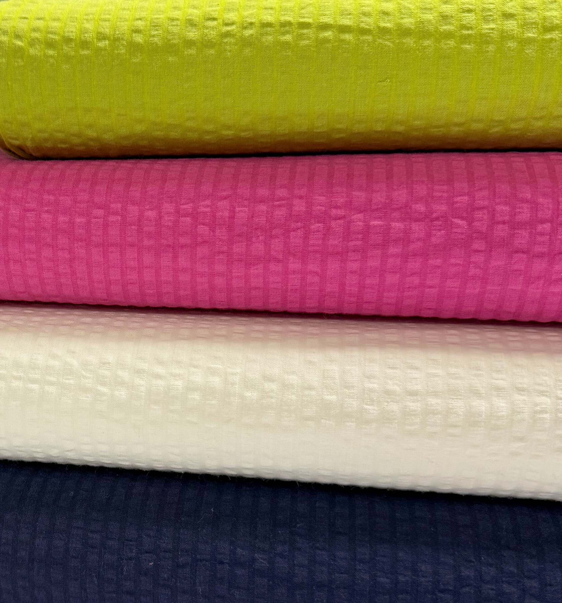 Seersucker is een typische zomerse stof, een klassieker die steeds populair blijft.