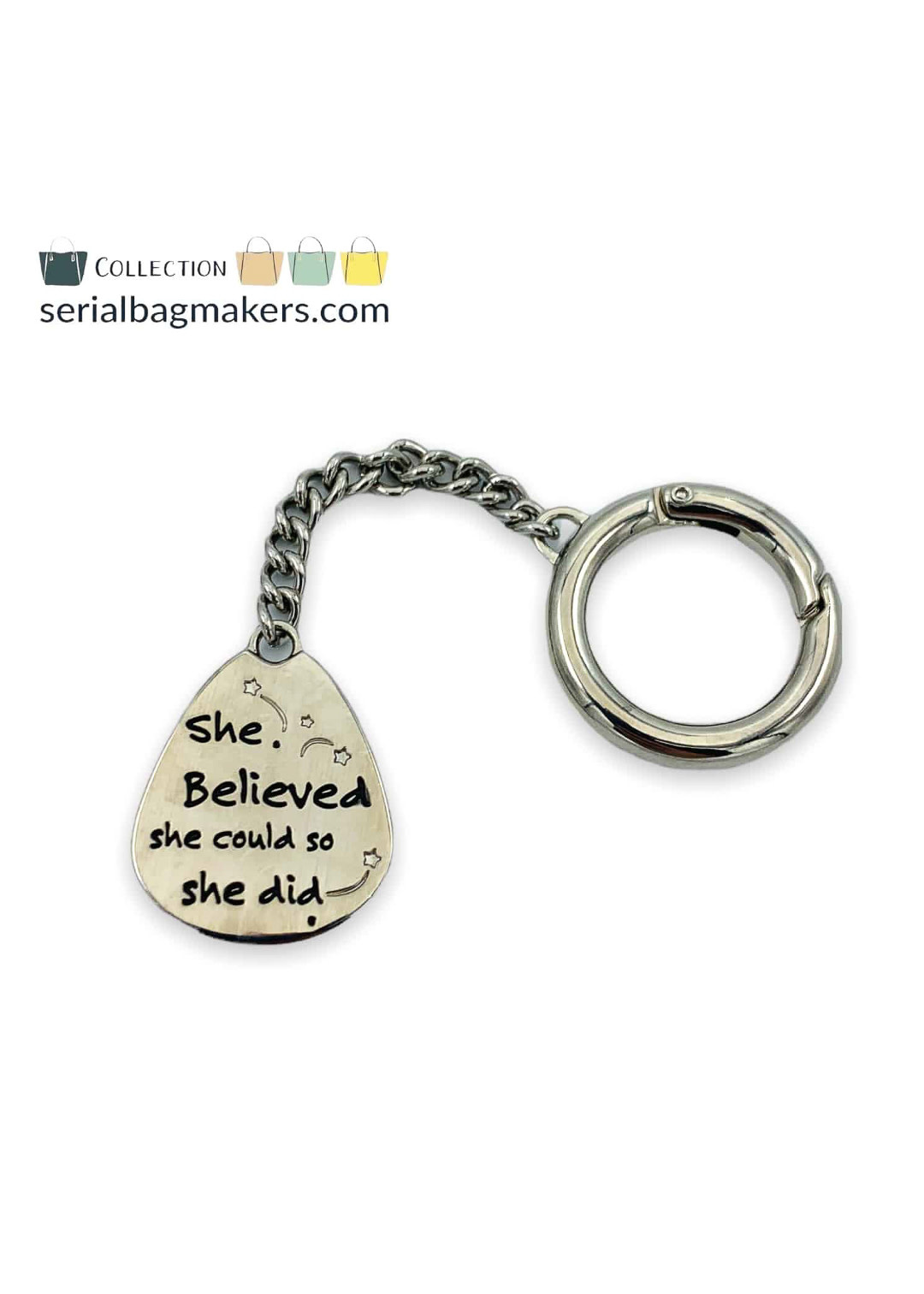 Elegante sleutelhanger met toffe quote om je tas verder te pimpen. Of gewoon om je sleutels aan te hangen.Opschrift: "She believed she could, so she did."