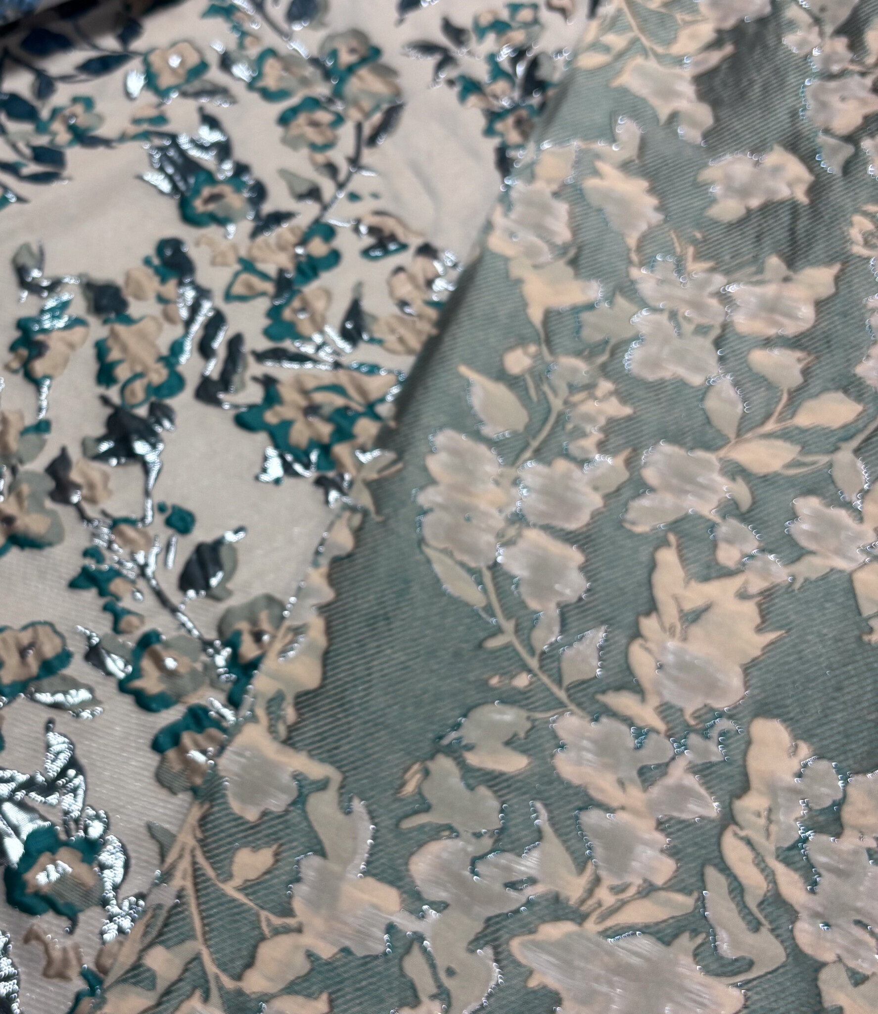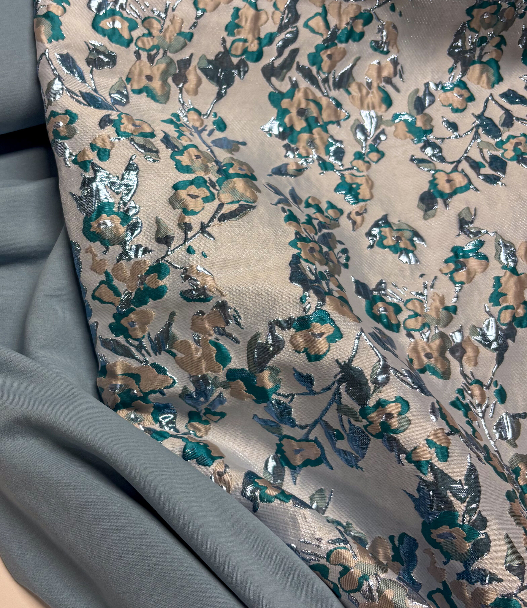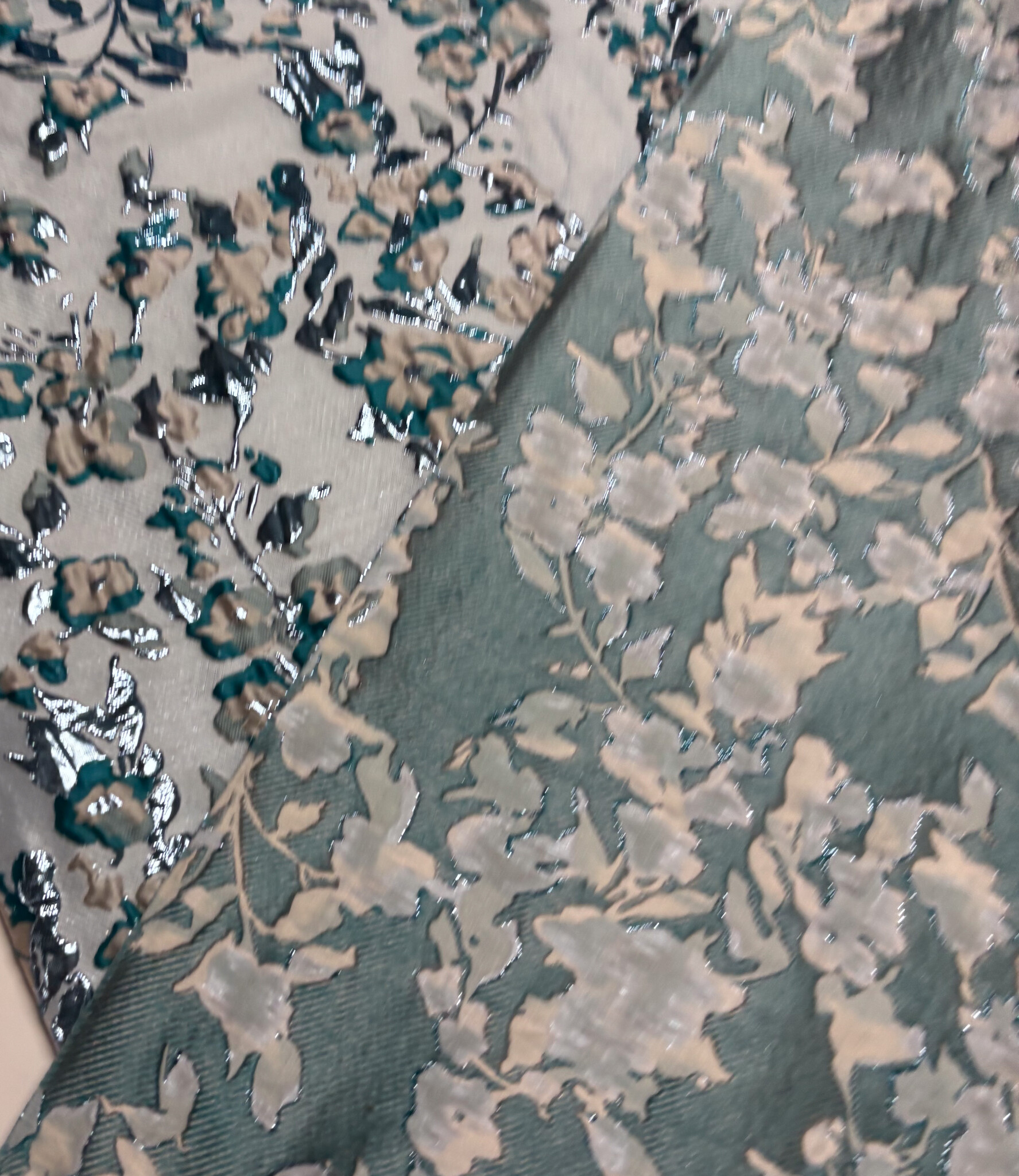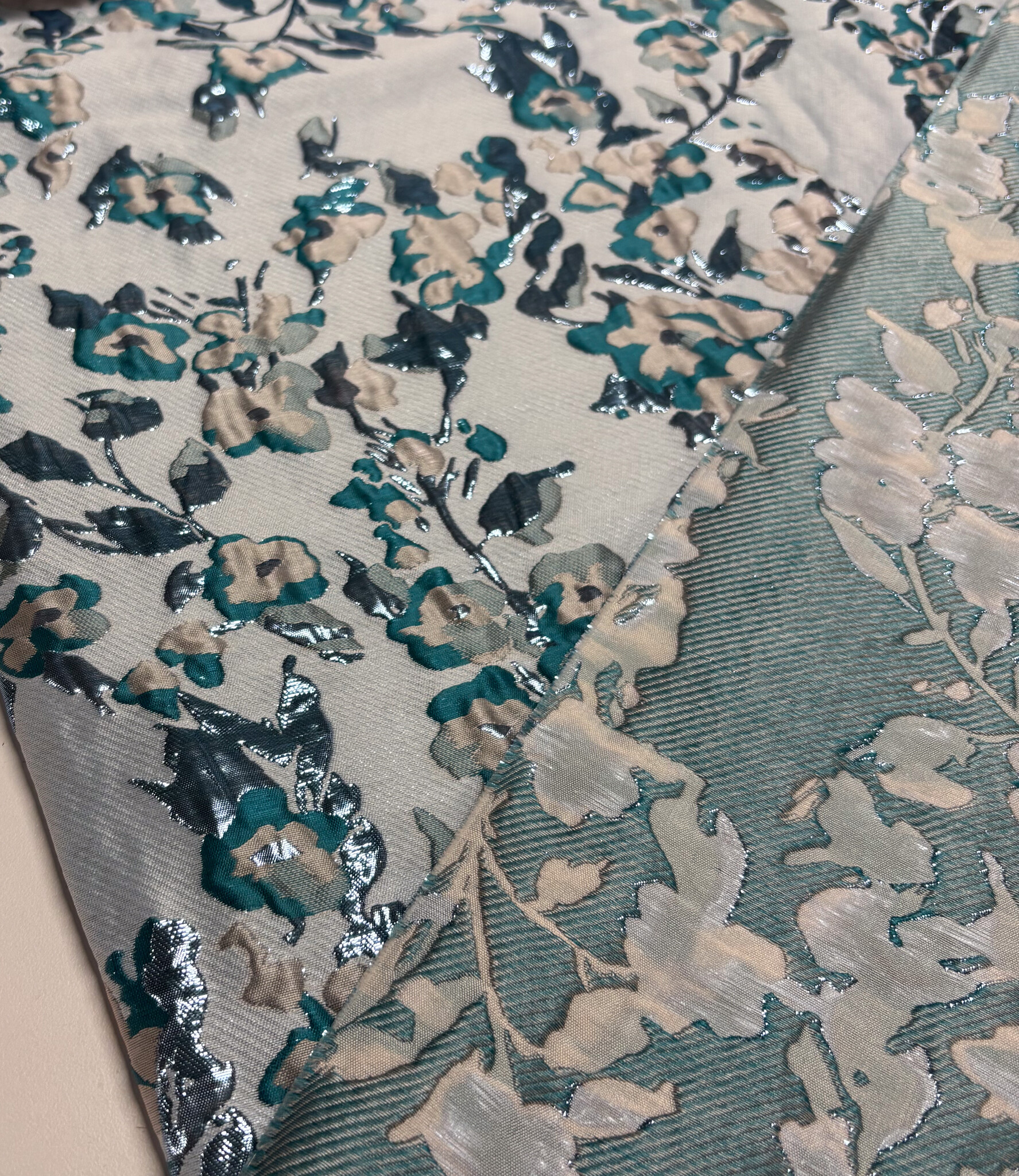 Een prachtige geweven jacquard met bloemen en lurex Dit is een soepele jacquard. Ideaal voor blouses, jurken, rokken en blazers. Maar zeker ook geschikt voor een losse broek. Of als detailmouw bij een sweater of blazer.