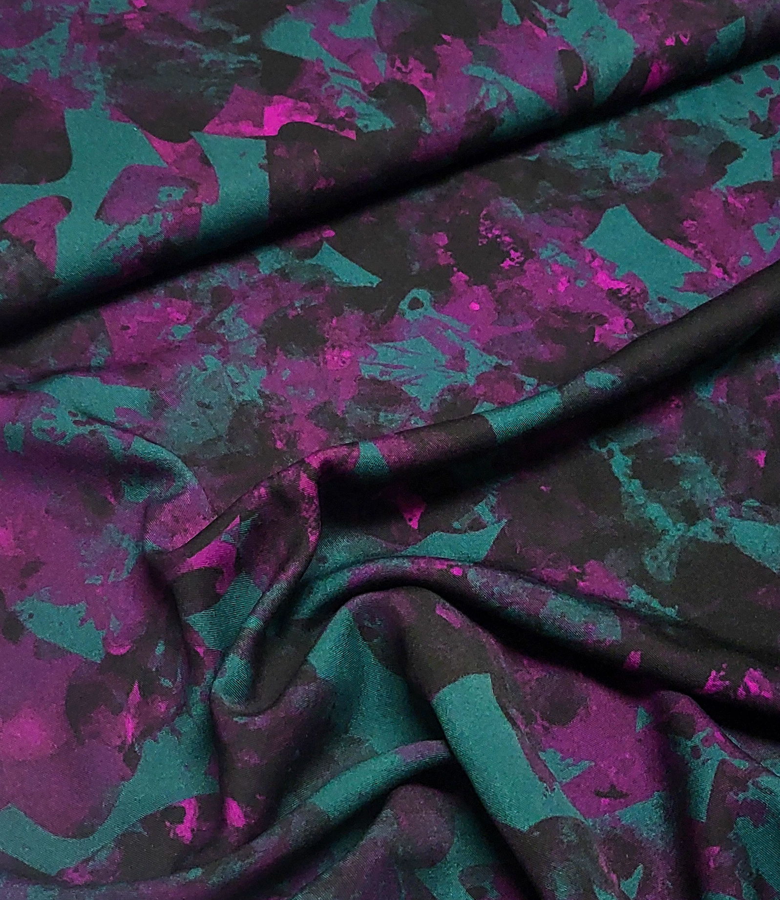 Een mooie viscose blend, groen paars, van Thorsten Berger. Perfect voor blouses, jurken, rokken, ...