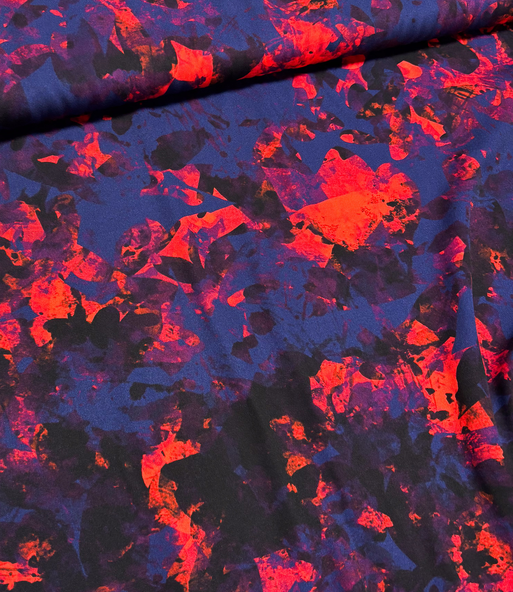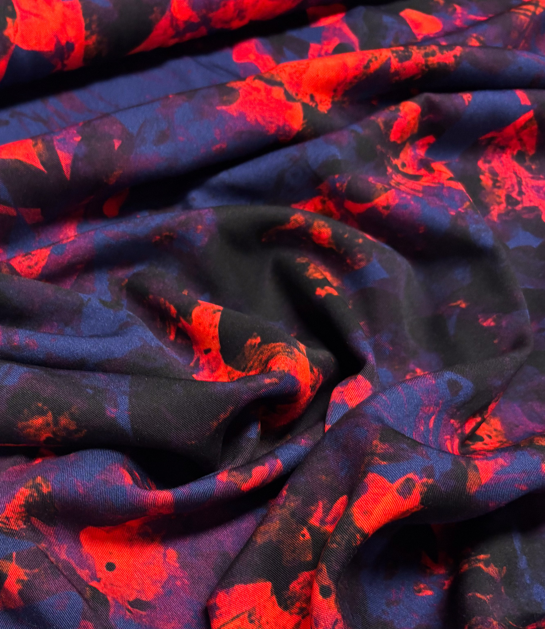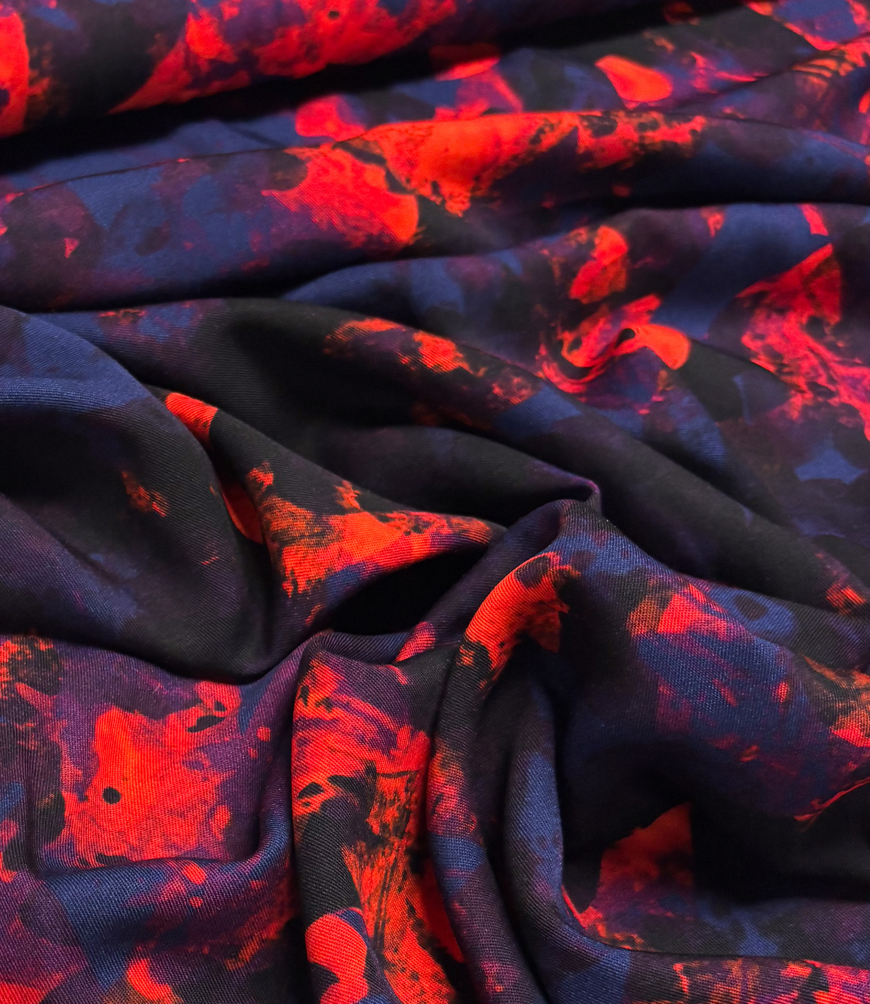 Een mooie viscose blend, blauw rood, van Thorsten Berger. Perfect voor blouses, jurken, rokken, ...