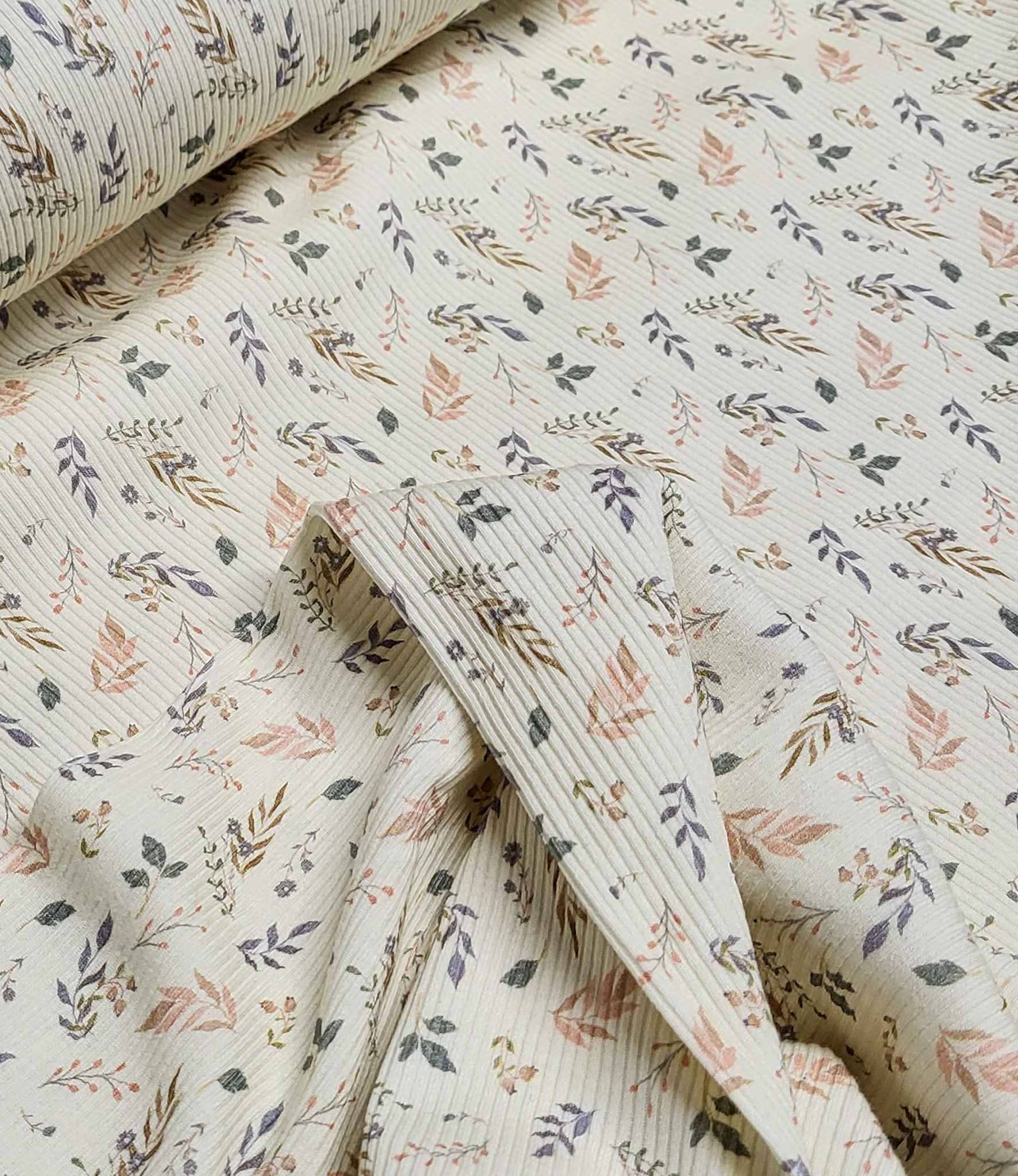 soft vanilla flowers - rib knit