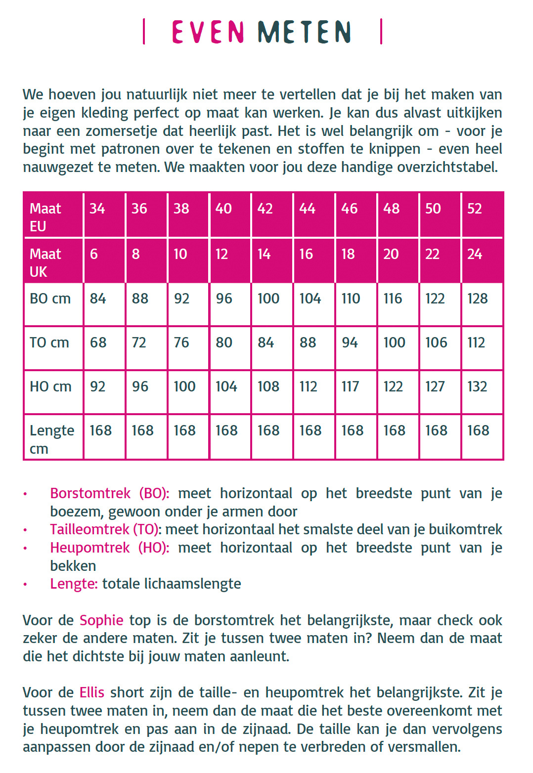 Sophie is ook een perfecte match met Ellis short, een aanpassende short die wat lager in de taille zit, met tailleband en blinde rits in de zijnaad. Het voorpand van de short heeft een naad in het midden, waar ook de leuke, schuine steekzakken in verwerkt zitten. Ellis heeft twee nepen per het rugpand voor een mooie pasvorm en is getekend met toegifte. Zo kan je Ellis in stoffen zonder stretch maken. Dit zomerse duo heeft alles in huis voor warme, zonovergoten dagen!