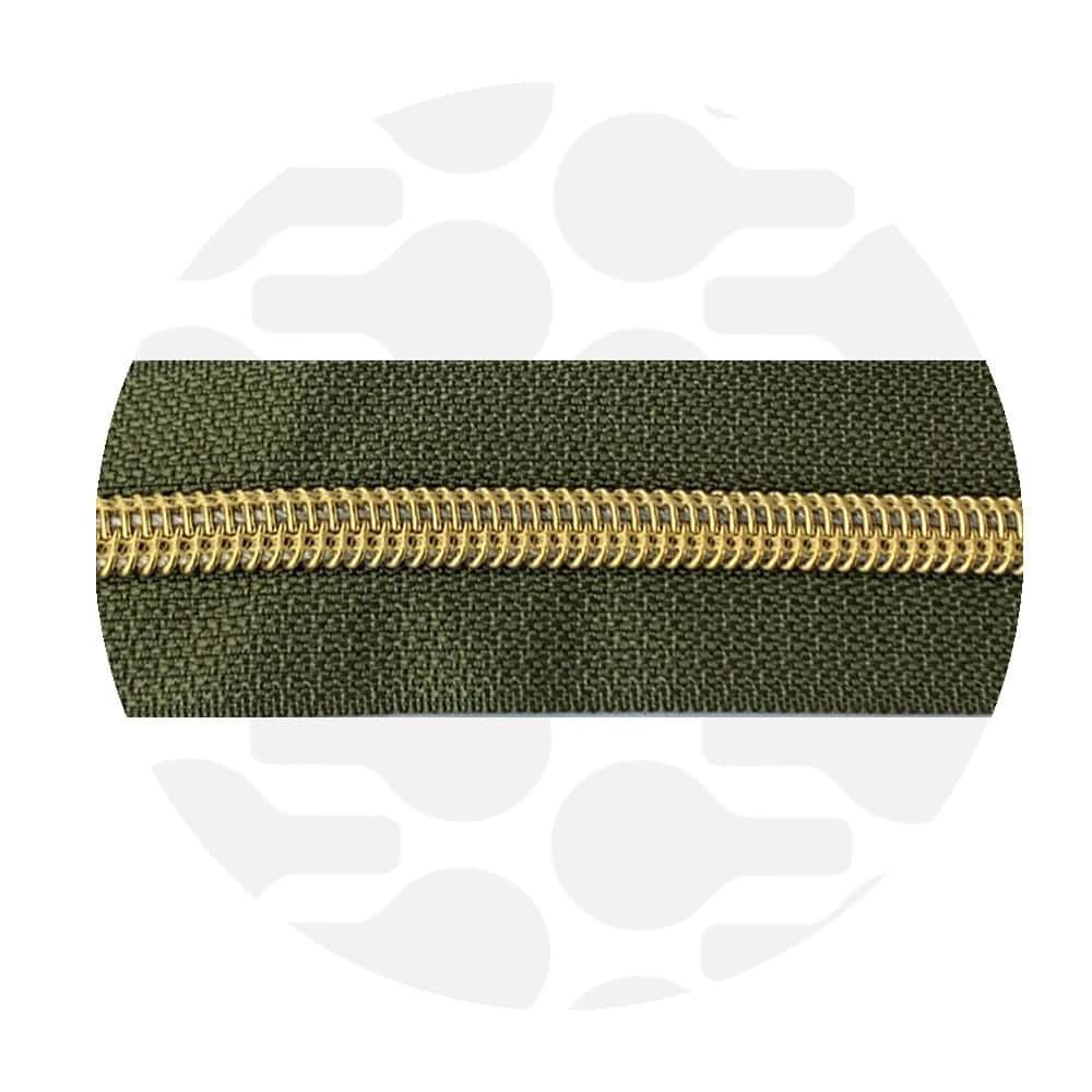spiraalrits legergroen met goud spiraal #5 (excl. ritstrekkers)