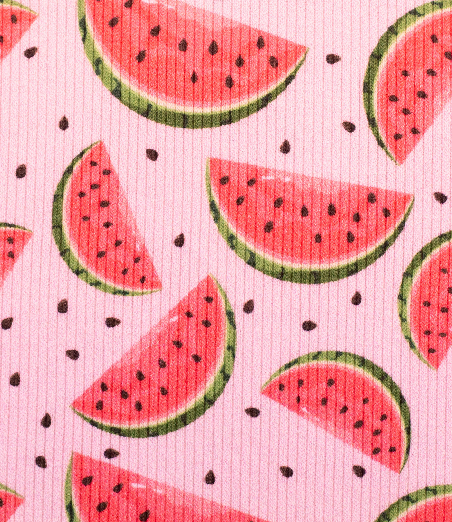 Een geribbelde tricot met meloenen. Swafing stoffe.