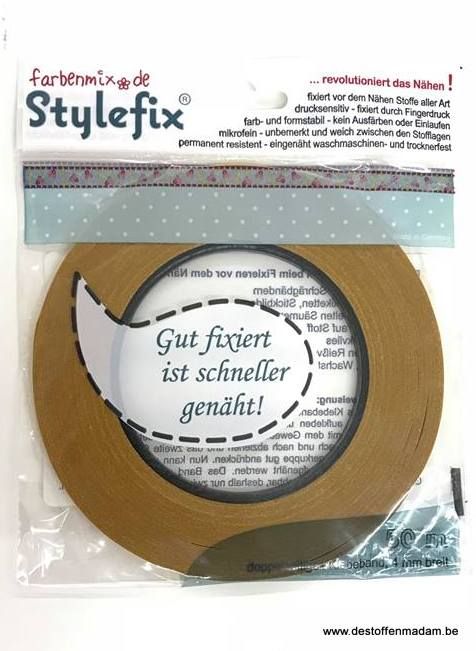 Stylefix is een smalle 4mm-brede dubbelzijdige tape. Dit kan het ideale hulpmiddel om bijvoorbeeld ritsen tijdelijk op hun plaats te houden.