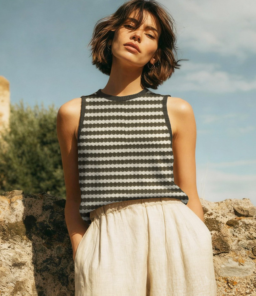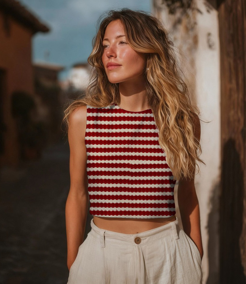 Een prachtige gebreide stof met strepen.
