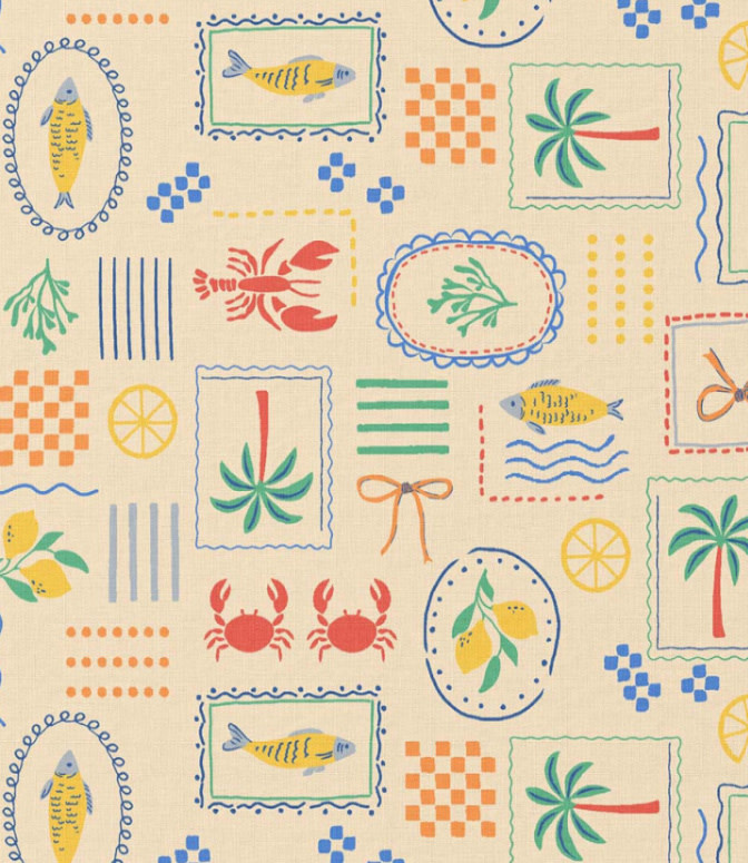 Een tof katoentje met vrolijke zomerse print. Leuk voor een hemdje, jurk, rok, als tafellinnen, ... OEKO-tex.