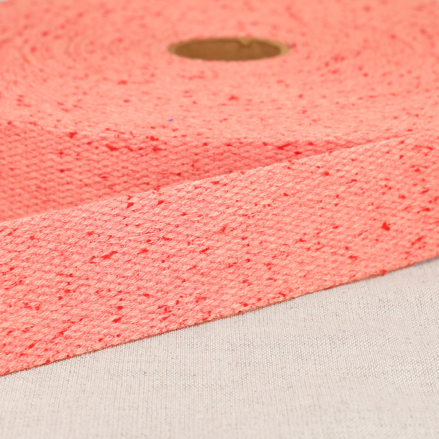 Deze tassenband snijdt niet als je hem draagt, het is een stevige keperband in mooie gemeleerde kleuren.