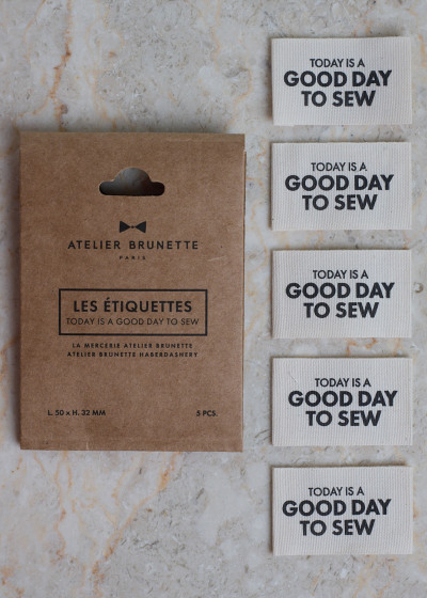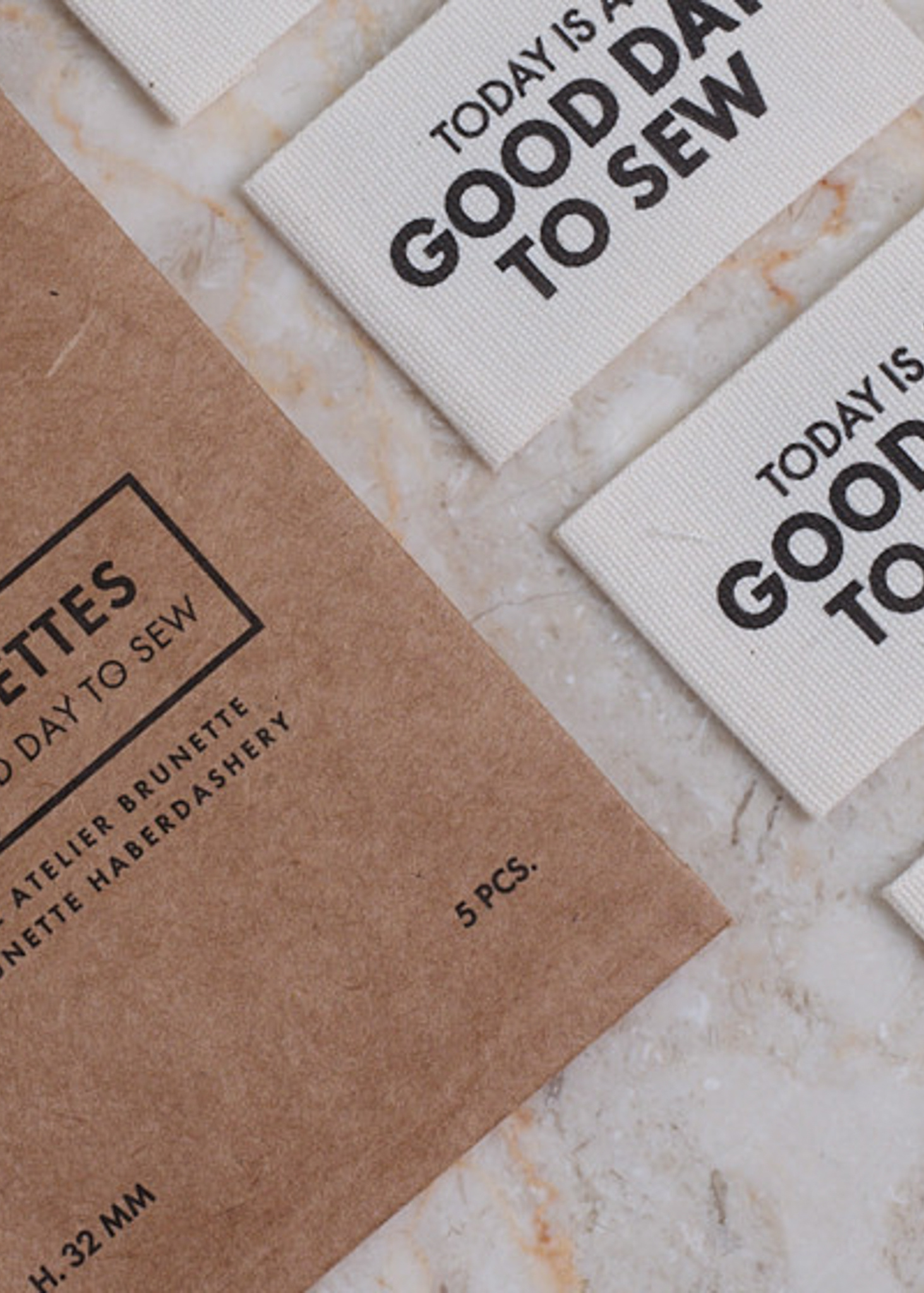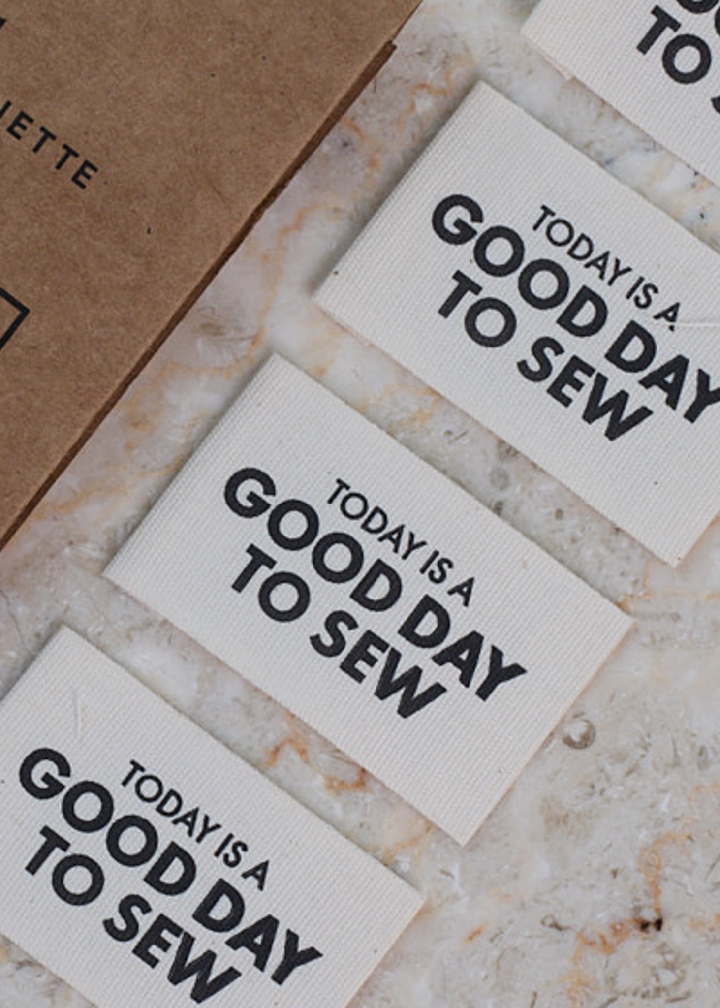 5 geweven kledinglabels om in te naaien, met quote "Today is a good day to sew" - Atelier Brunette