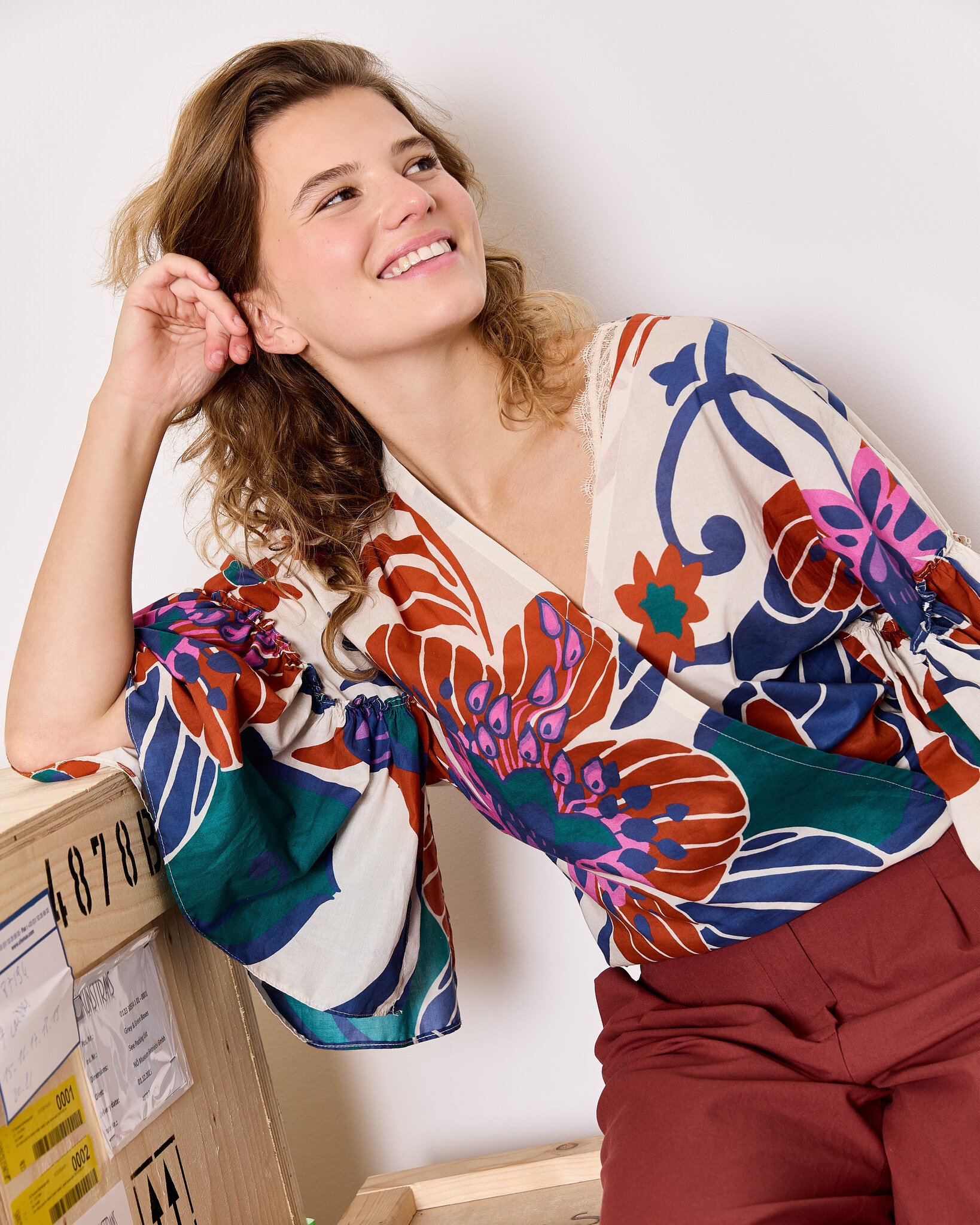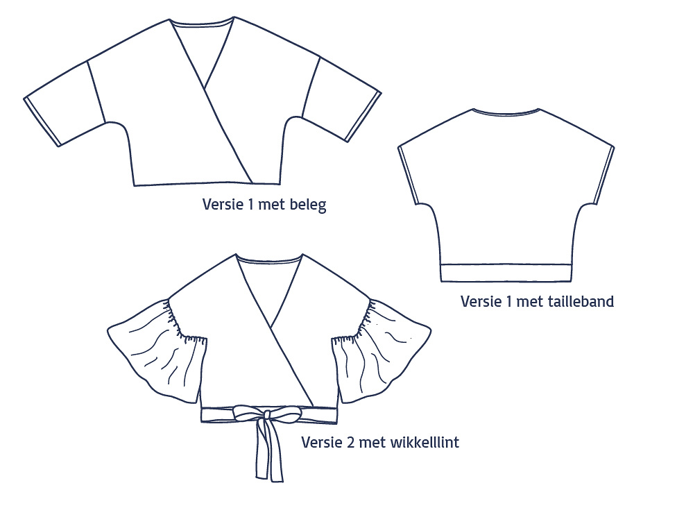 Even veelzijdig als vrolijk, Trixie is een echte must-have voor je garderobe! De overslag voegt een mooi detail toe aan deze bloes en creëert tegelijkertijd een elegante V-hals. Trixie bevat drie verschillende mouwopties: een rechte mouw, korte aangesneden mouw en modieuze fronsmouw. Zo kan je de bloes perfect afstemmen op het seizoen en haar helemaal naar je zin maken! De tailleband die erbij zit kan je als beleg of boord gebruiken, of maak Trixie als een echte overslagbloes met de toffe linten!