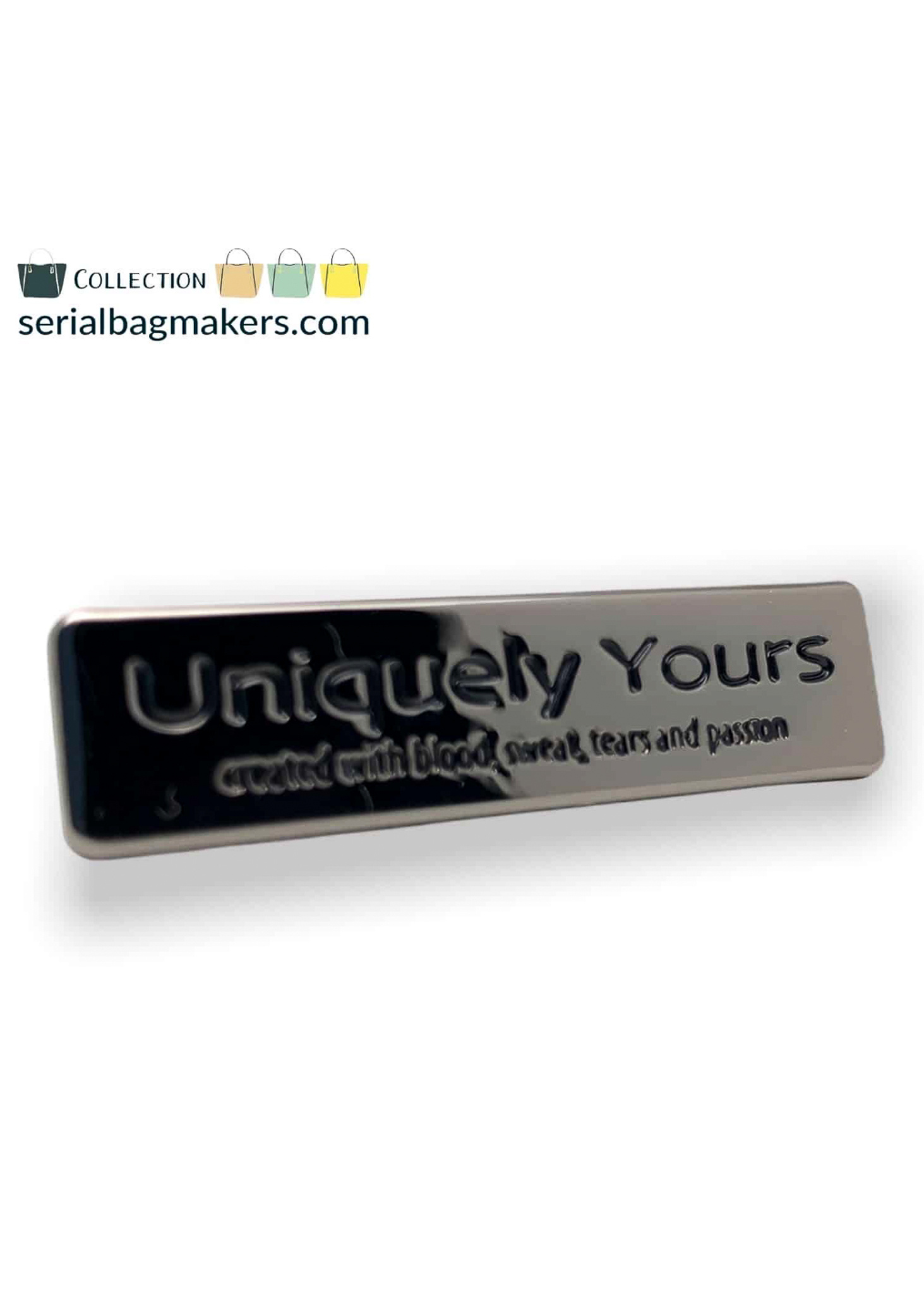 • Jouw unieke zelfgemaakte tas, portemonnee, rugzak, toilettas, ... voorzie je met dit tof metalen label snel en makkelijk van een extra touch.