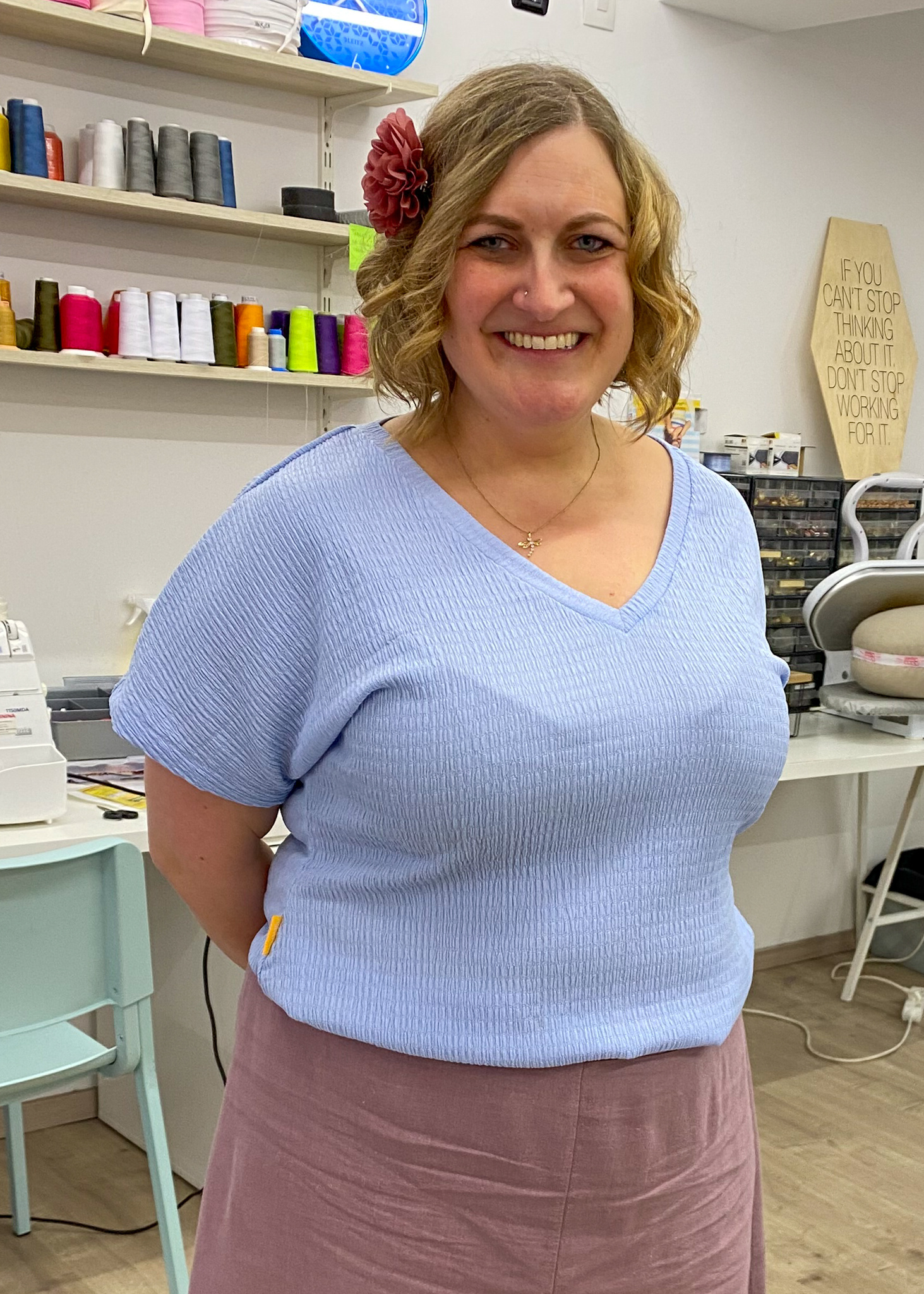 Heel flatterend, een T-shirt met een V-hals. Maar veel naaisters zijn er wat bang van. Hoe krijg je die hals mooi? Dat leer je in deze workshop.