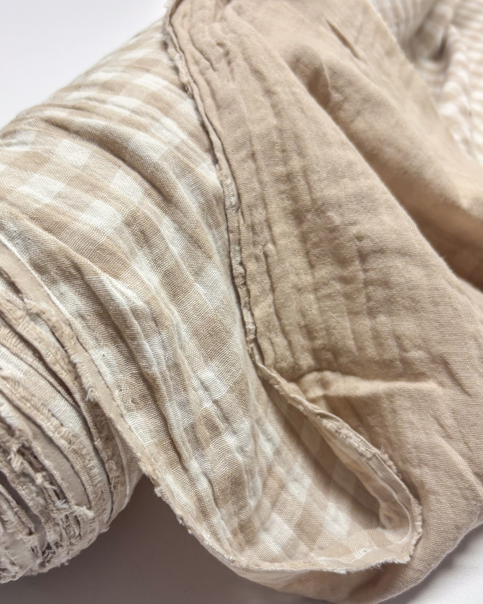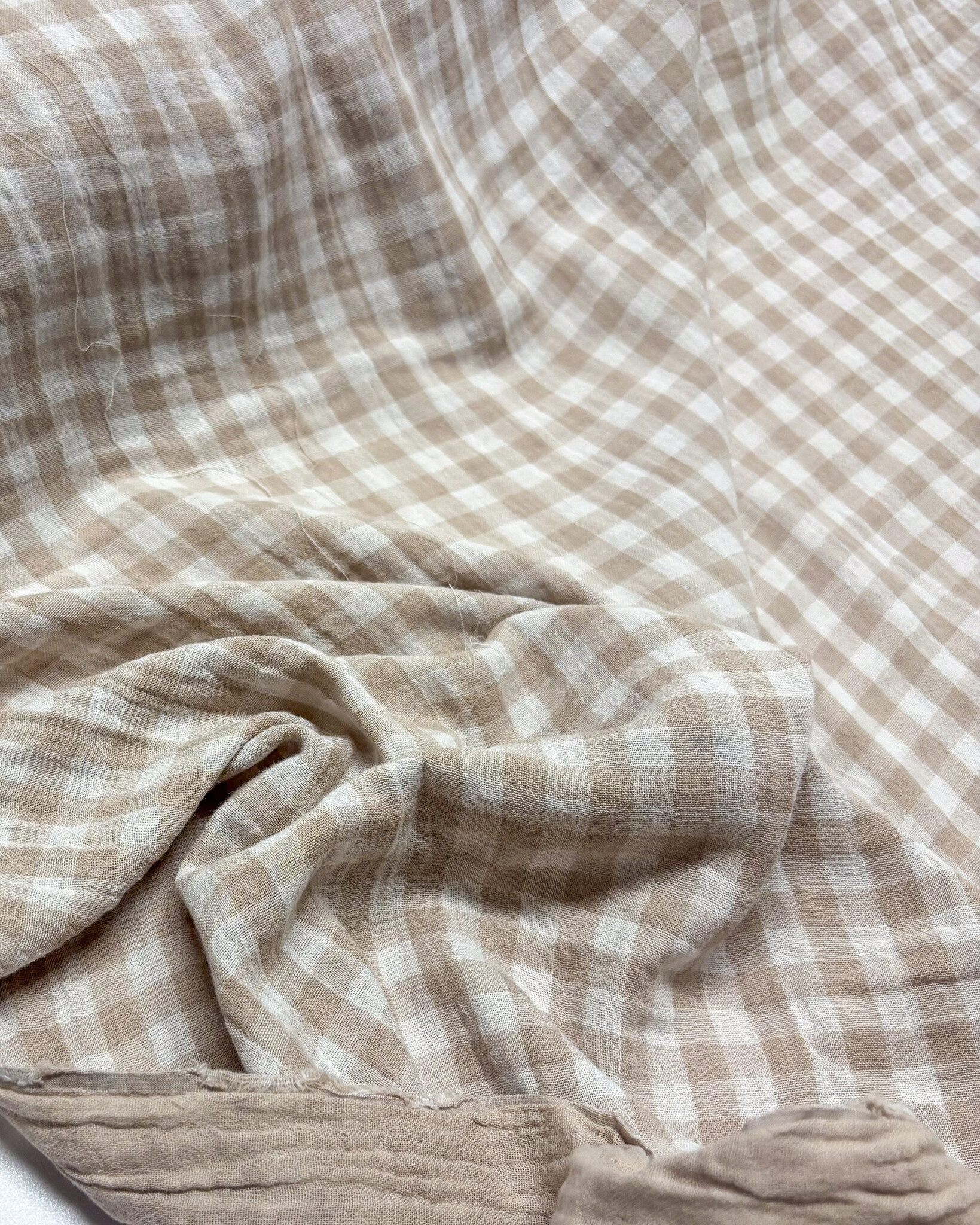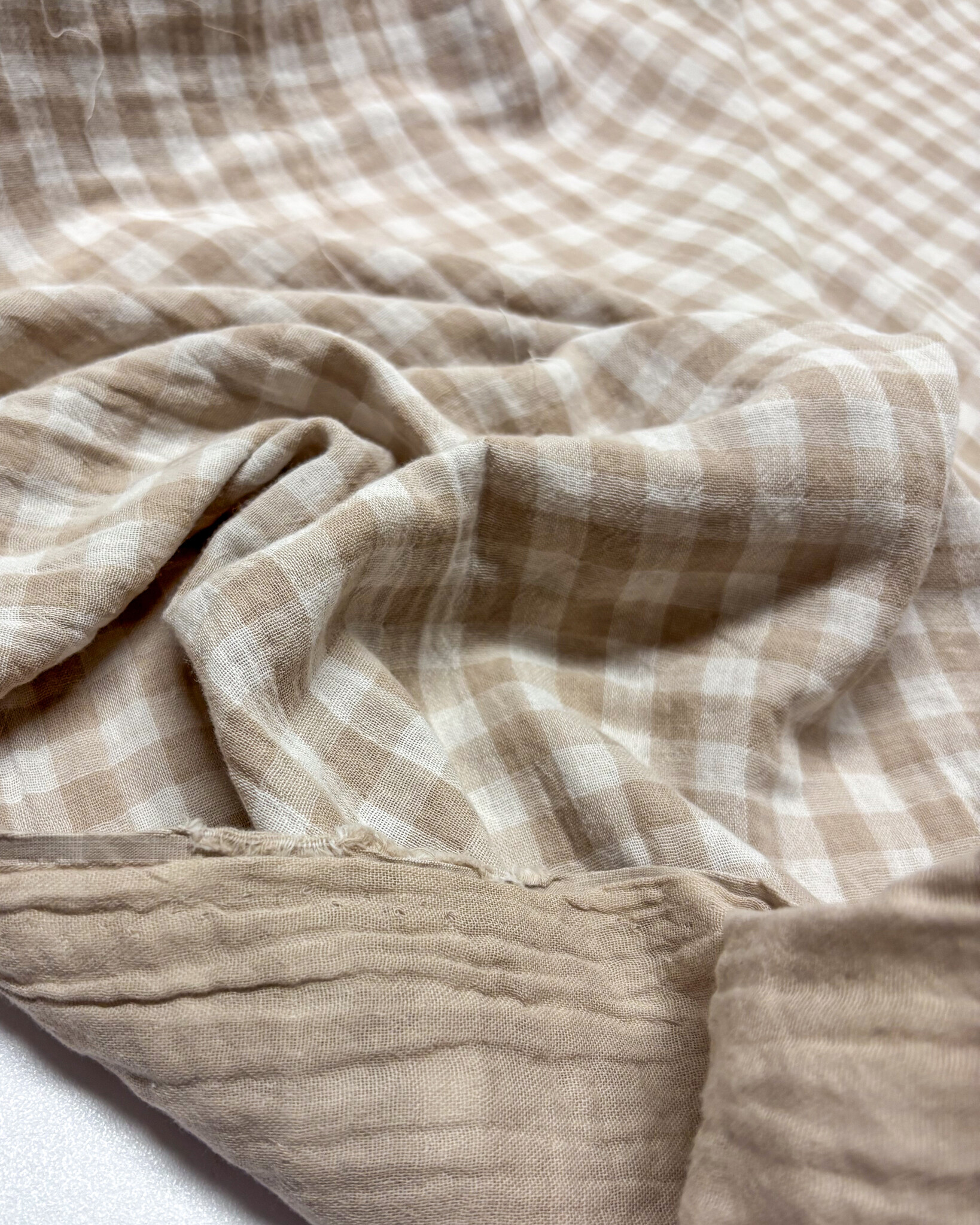 Mooie kwaliteit double gauze / tetra double face met vichy ruitjes. Perfect kleedjes, tops, T-shirts en voor baby- en kinderspulletjes. Heerlijk zacht. Deze stof is bruikbaar langs beiden kanten.