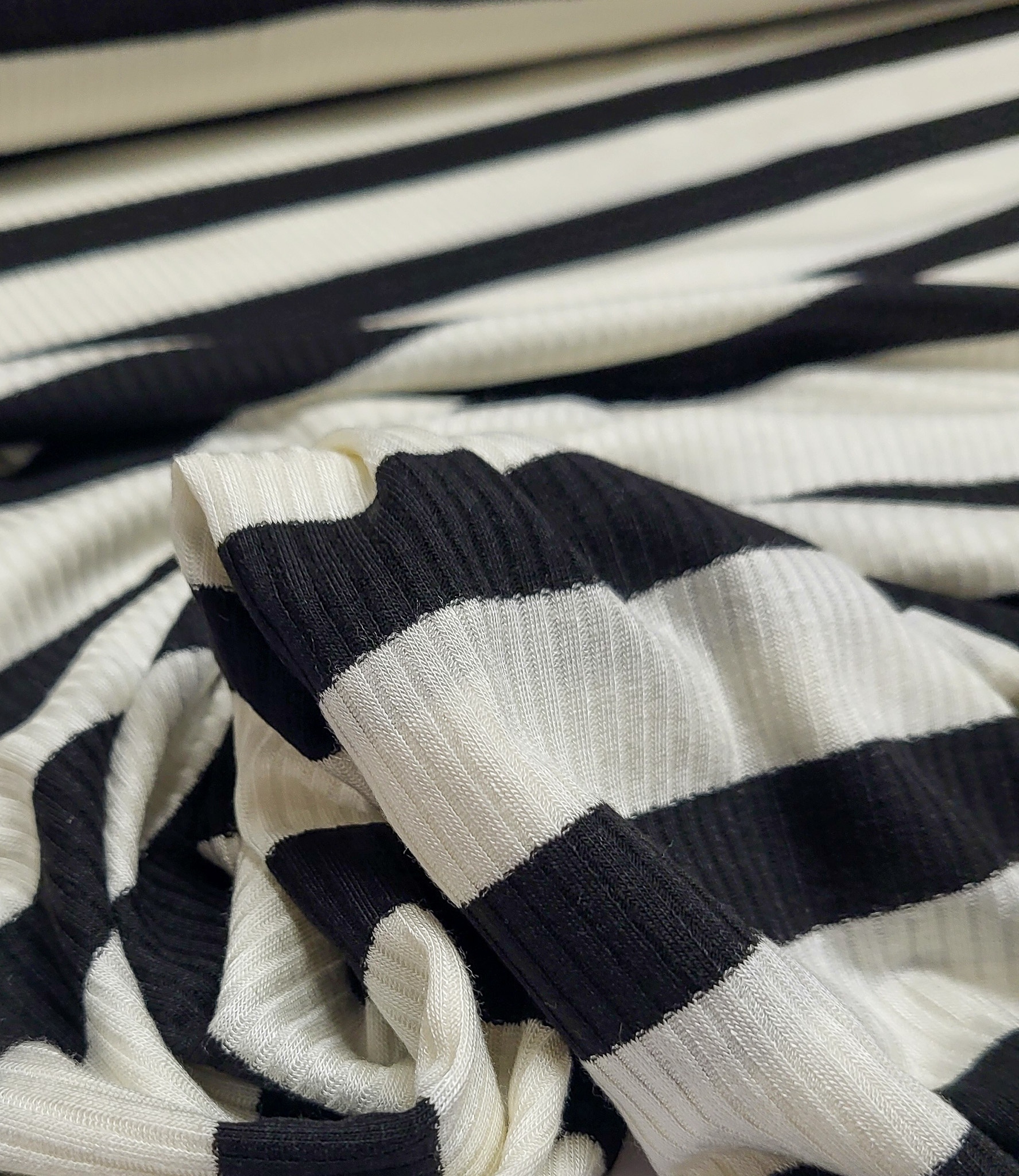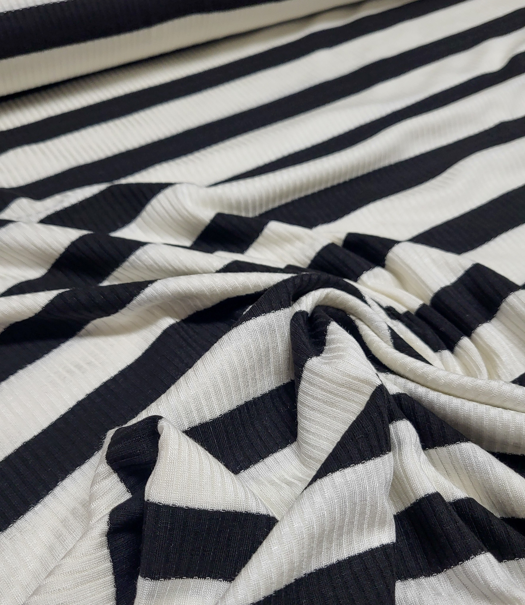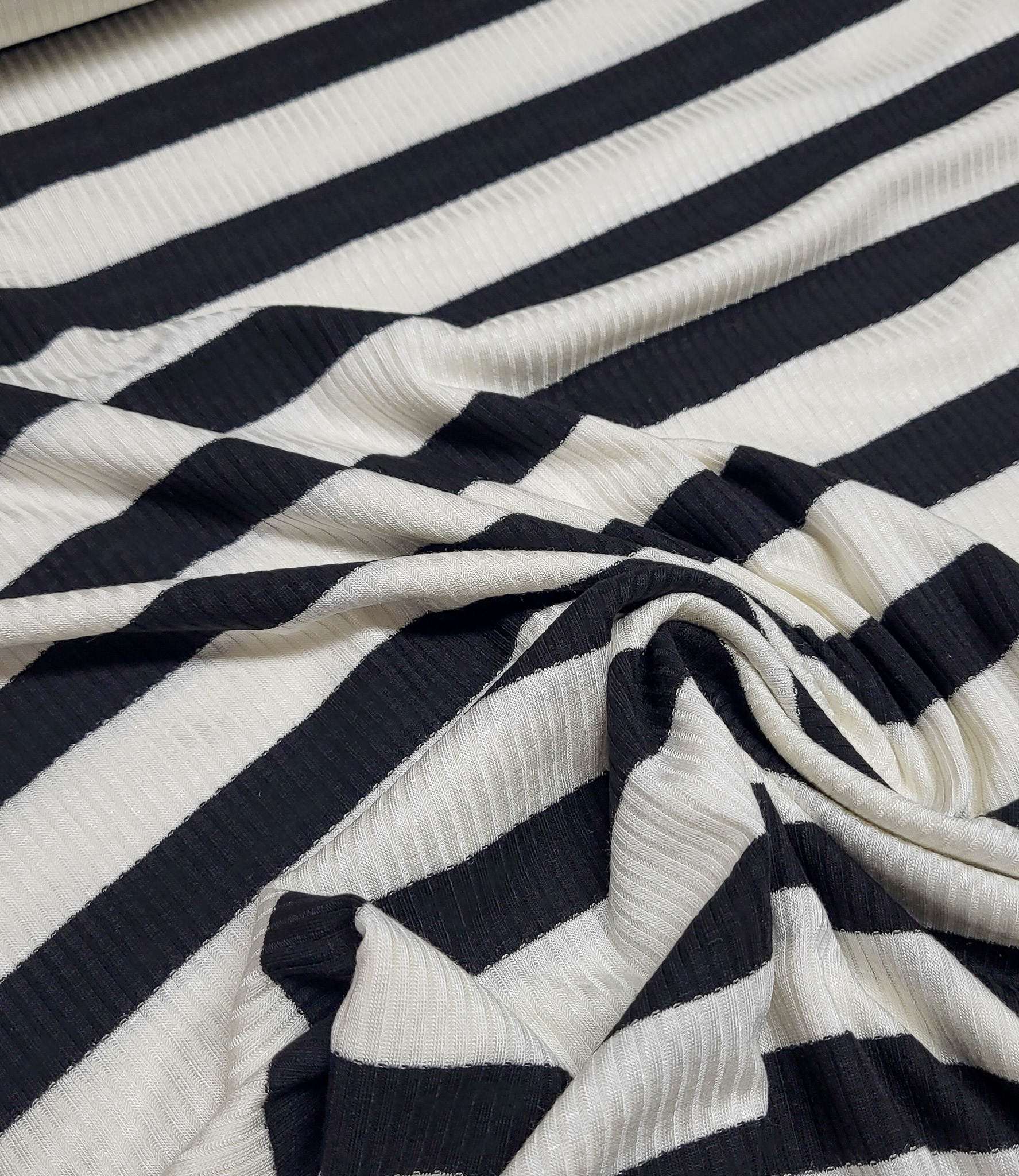 viscose tricot met platte ribbel - zwart gestreept - Madeline de stoffenmadam - Stoffenwinkel Lier ( Antwerpen )