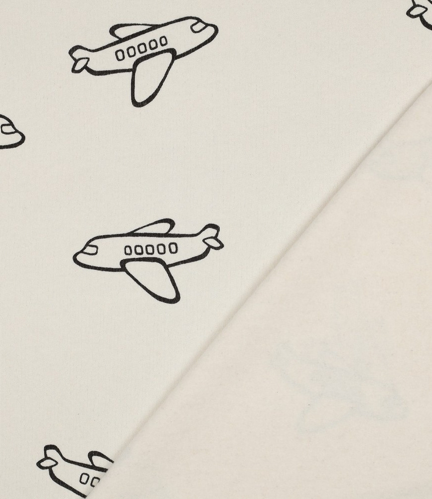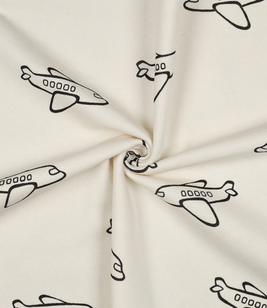 Een hele mooie kwaliteit dikke sweater met vliegtuigen. Heerlijk warm en geschikt voor truien, broekjes, vestjes, kleedjes, etc. Lekker zacht moltonlaagje achteraan.