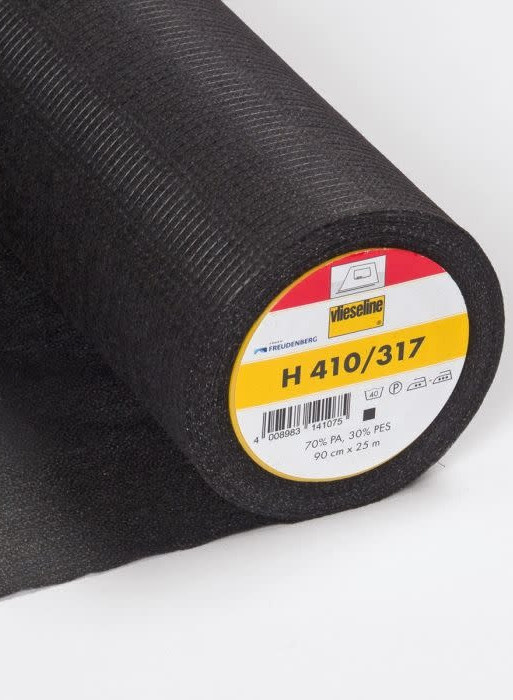 Vlieseline H410 is een zachte stevige tussenvoering met verticale draden en wordt gebruikt voor de versteviging van bijvoorbeeld mantels.