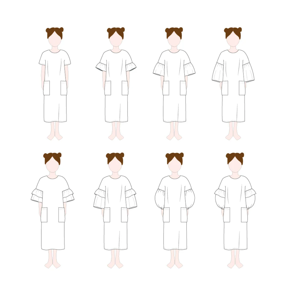 De magie zit in de veelzijdigheid. Kies tussen geweven of gebreide stoffen en creëer een knusse, casual look of een meer verfijnde, geklede outfit. Met opties zoals gerimpelde of ballonmouwen, verschillende lengtes (van cropped tops tot lange jurken), verschillende halsafwerkingen en zelfs zakken, past het ontwerp zich volledig aan jouw persoonlijke wensen aan.