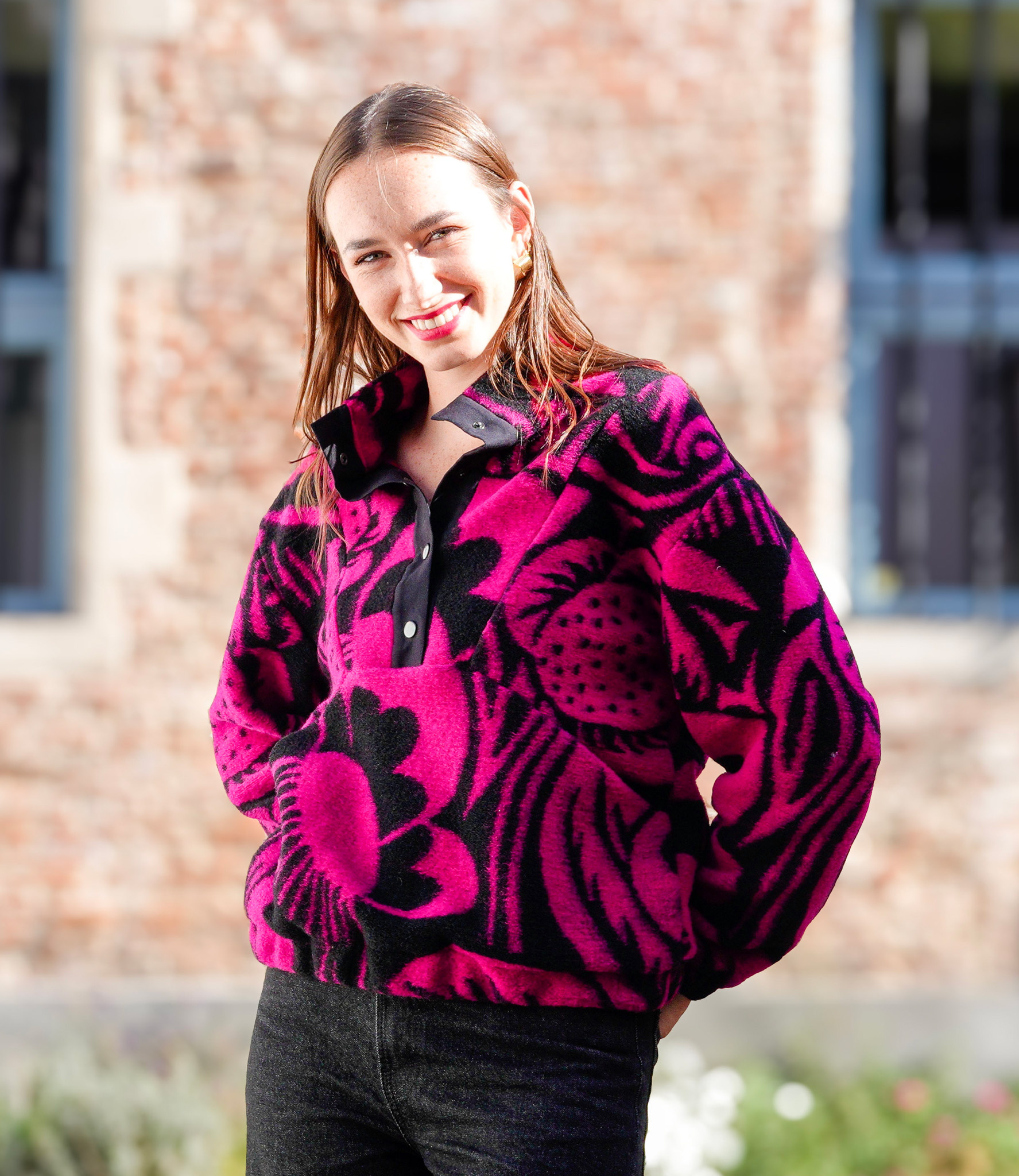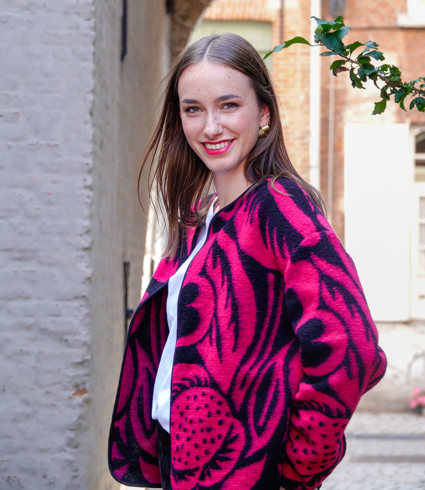 Atelier Jupe maakte de Julia sweater en een vereenvoudigde Dani jas in deze stof.
