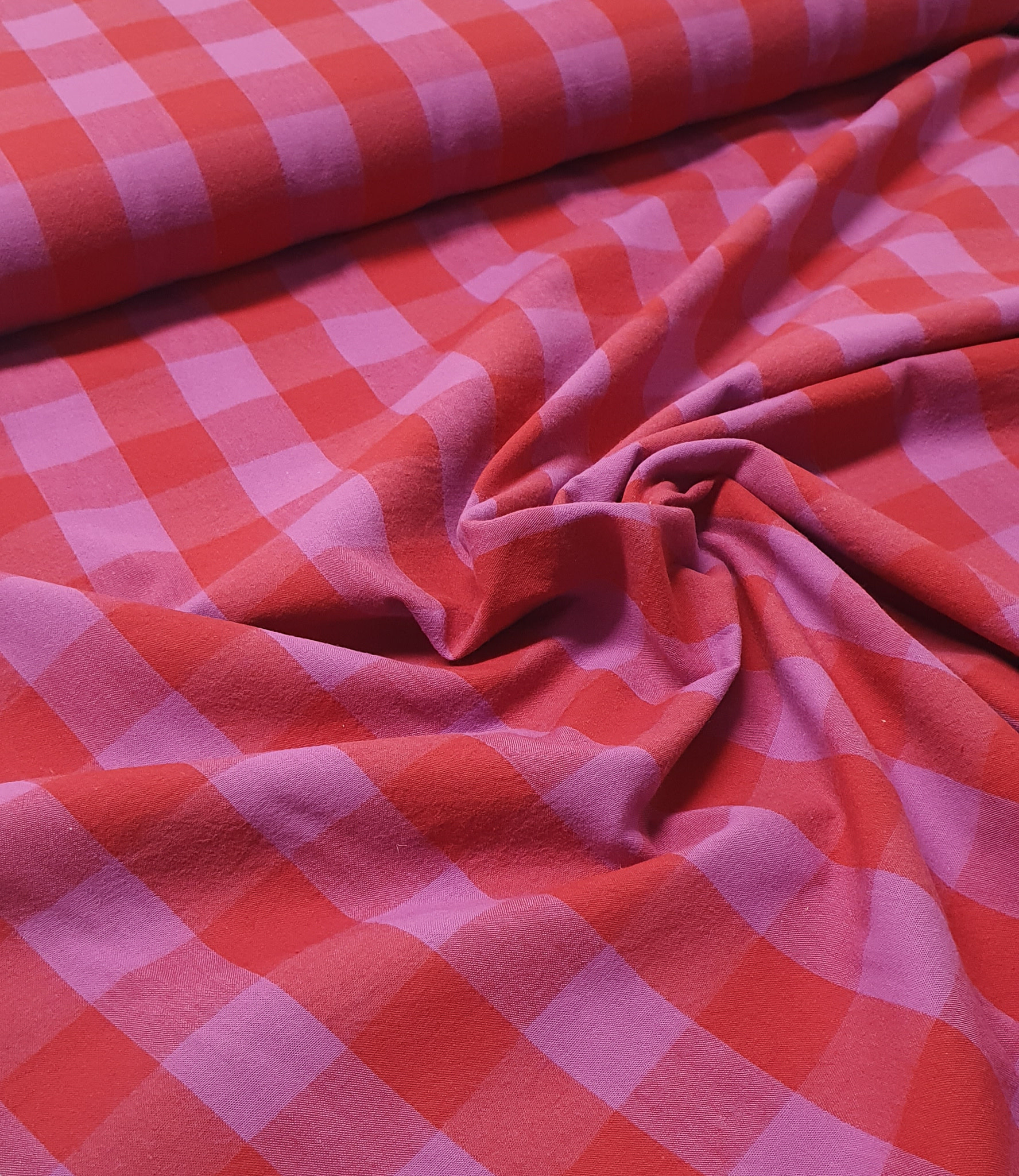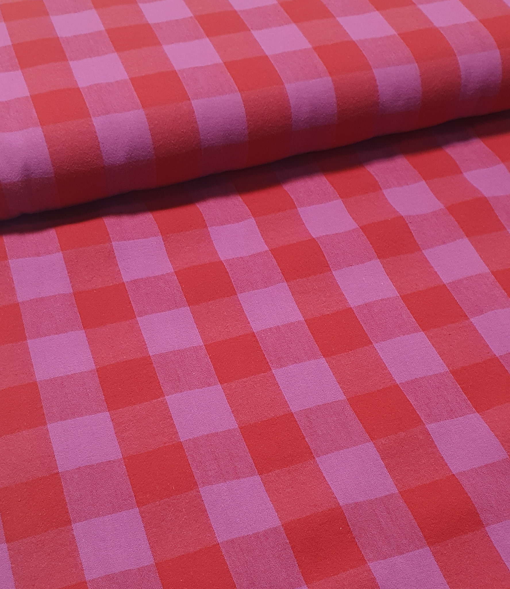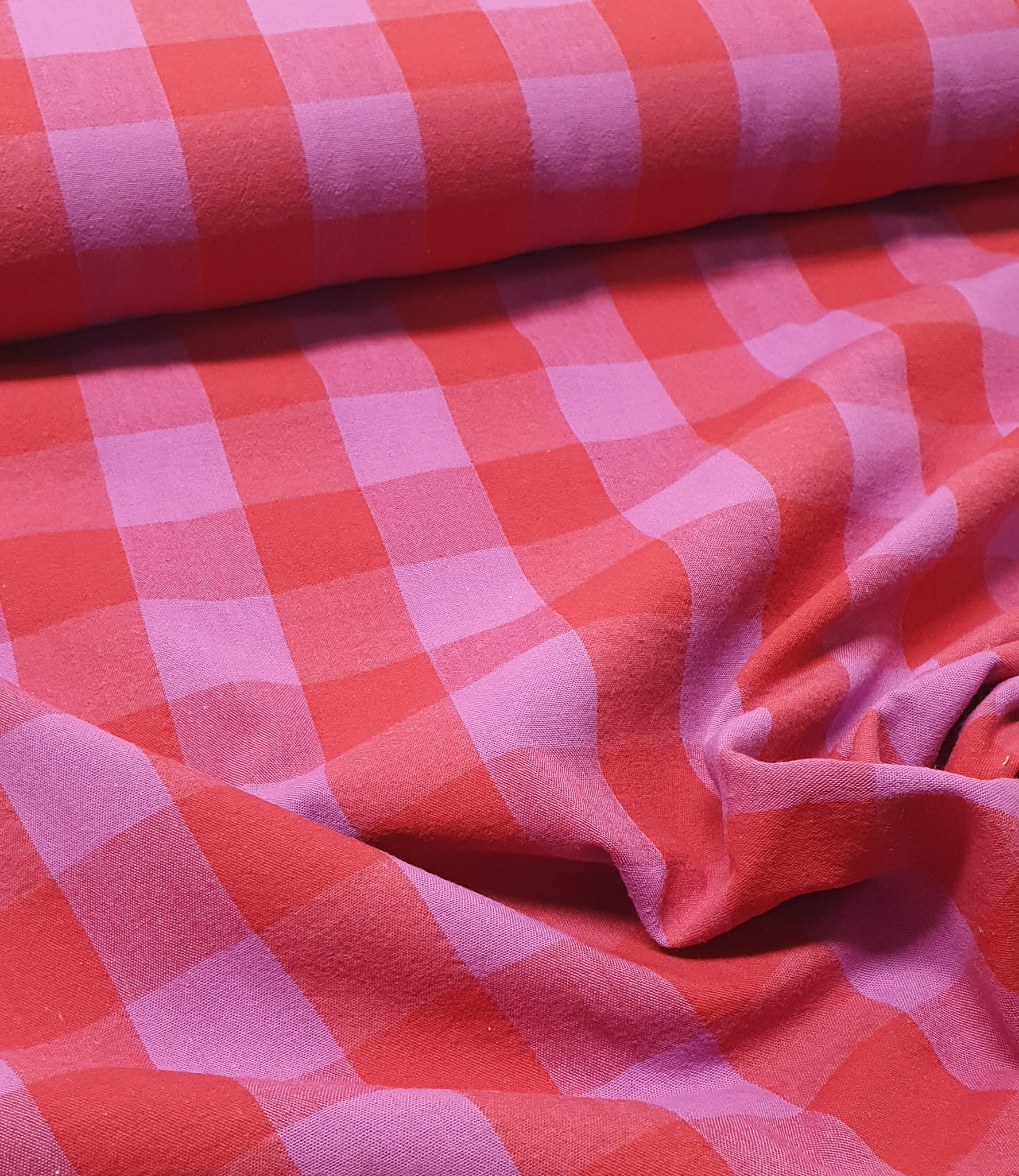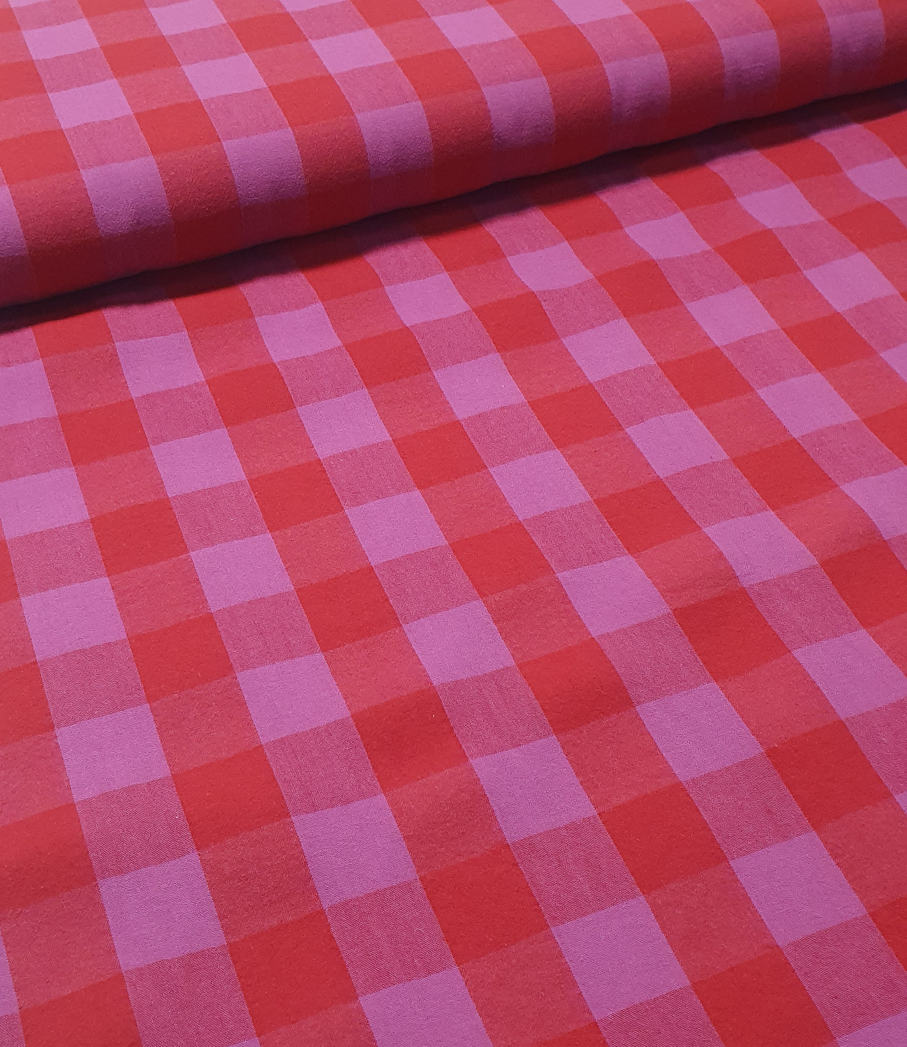 Yarn dyed katoen - checks - roze rood - Madeline de stoffenmadam - Stoffenwinkel Lier ( Antwerpen )