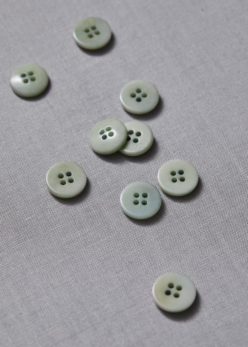 Effen corozo knoop van meet MILK. Deze knoop heeft een plat oppervlak en een licht afgeronde achterkant