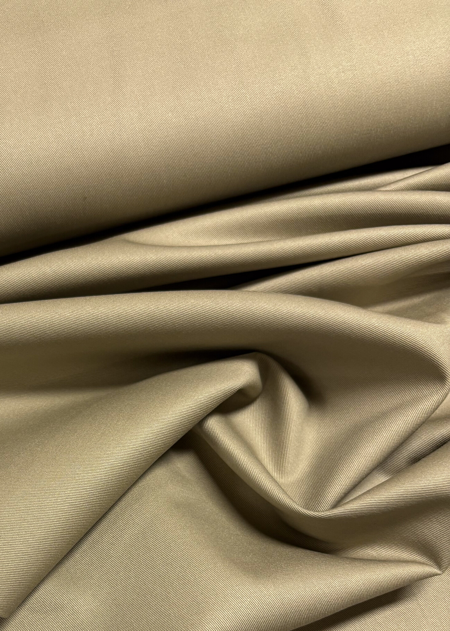 Een zachte en stevige gabardine voor broeken, trenchcoats, .. Deze stof is niet waterdicht.
