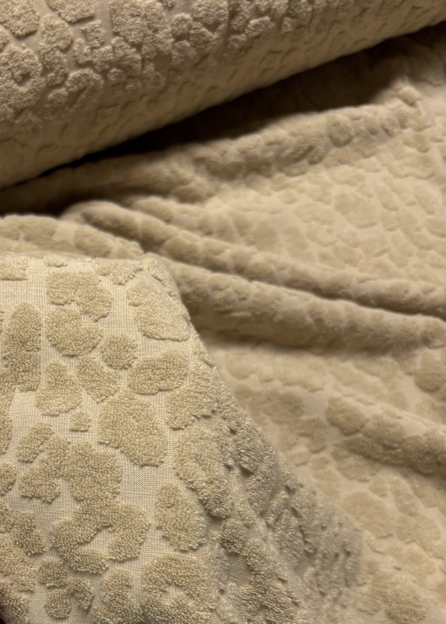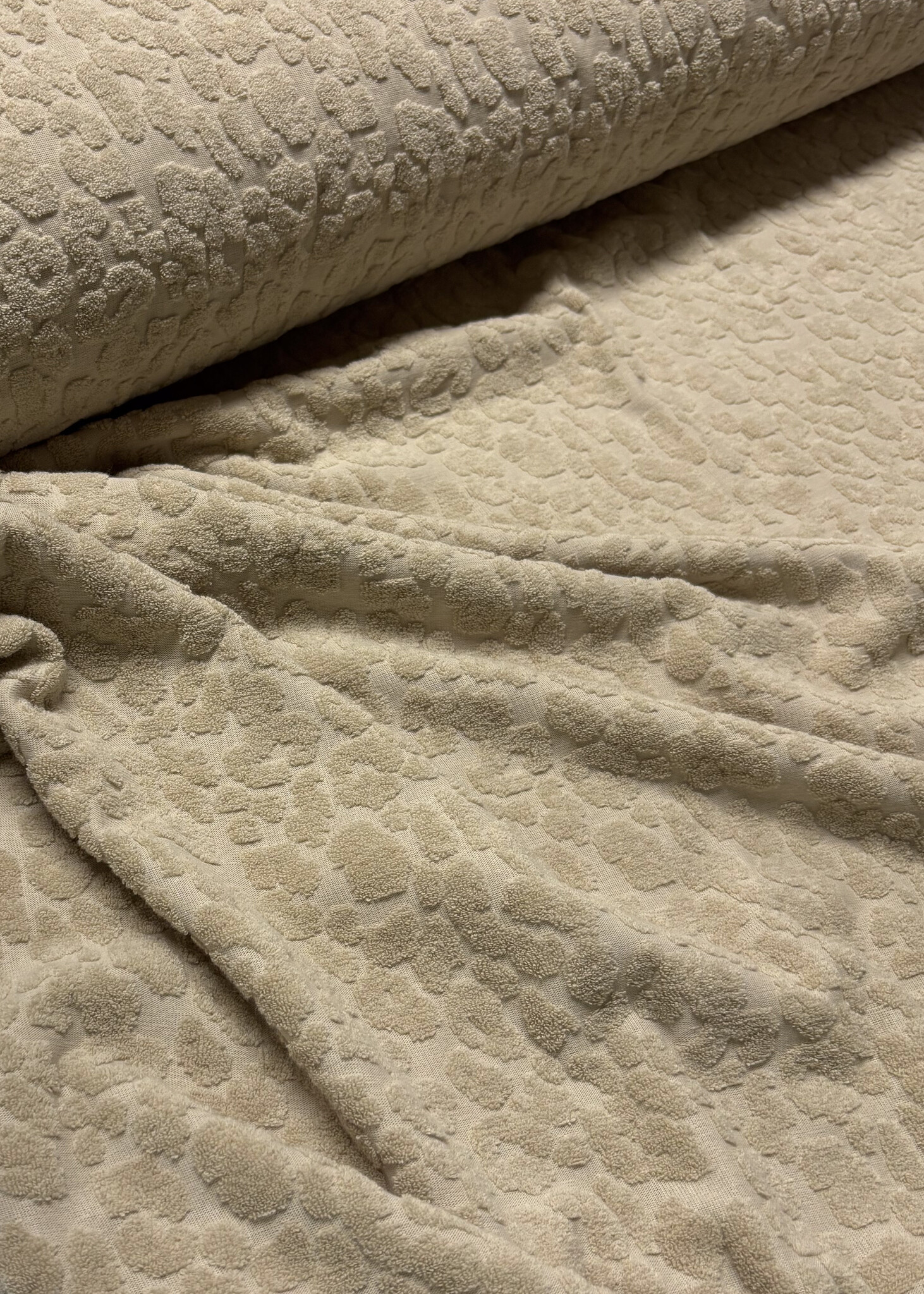 Mooie, kwalitatieve tricot met subtiele luipaardprint. Perfect voor T-shirts, kleesjes of kruippakjes. Oeko tex.